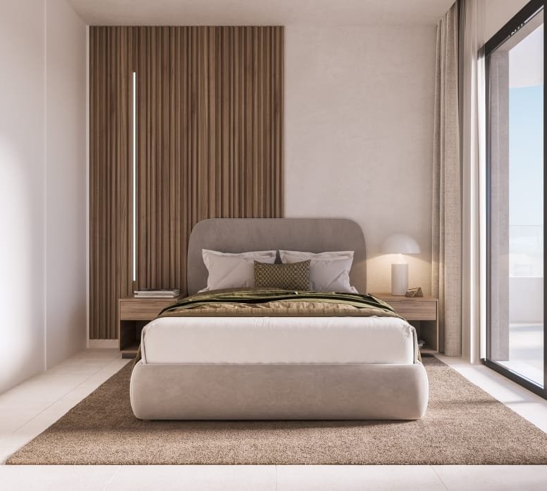 The development is made up of 5 three-storey blocks with: · Ground floor with a garden and possibility of a private pool · Middle floor · Penthouses with a solarium & terraces of 108m²