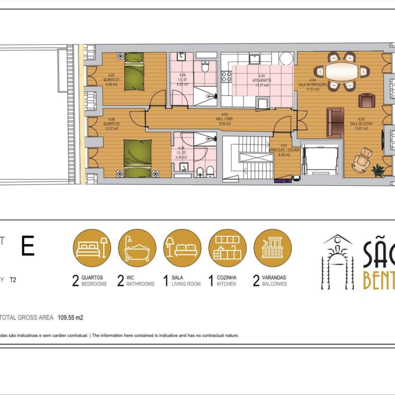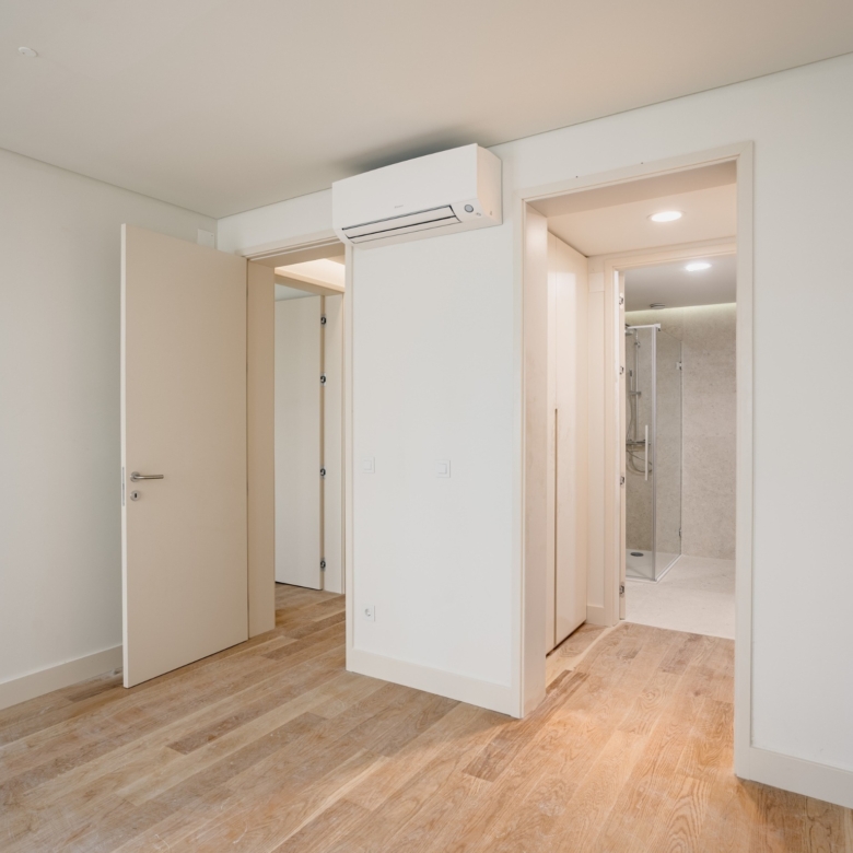 2-bedroom apartment with 110 m2 of private gross area , located in São Bento 21, Santos, Lisbon.The apartment features a spacious living room, two comfortable bedrooms, one of which is en-suite, and a fully equipped modern kitchen. The master suite includes a private bathroom, and there is a second full bathroom serving the other bedroom and common areas. All rooms showcase high-quality finishes, including American oak floating floors in the living areas and bedrooms, and lioz stone in the bathrooms and kitchen. The cabinets are cream lacquered, and all windows have lacquered aluminum frames with double glazing. The apartment is equipped with Daikin air conditioning in all rooms and Bosch appliances in the kitchen. The photographs represent the model floor of the development.São Bento 21 is a fully rehabilitated building that combines traditional architecture with modern design, located in Santos, Lisbon, a central area close to the Tagus River. The project includes 5 apartments, one studio and four 2-bedroom units. The building has an elevator, providing convenience to residents, and is suitable for both own housing and investment, offering an opportunity to live or invest in one of Lisbon’s most dynamic areas.Located in the heart of Santos, in a central area with easy access to services, transport, and leisure areas. Its location ensures excellent transport links, including trains, buses, and trams, facilitating access to other parts of the city. The combination of history, culture, proximity to the river, and centrality makes Santos one of Lisbon’s most sought-after neighborhoods, offering an urban quality of life that’s hard to match in other parts of the city.It’s a 5-minute walking distance from IADE – Creative University, Largo de Santos, and the entire Lisbon riverside area. A 10-minute walk from Santos train station and Time Out Market. A 10-minute drive from CUF Tejo Hospital and access to the 25 de Abril Bridge. It’s also 20 minutes by car from Humberto Delgado Lisbon Airport.