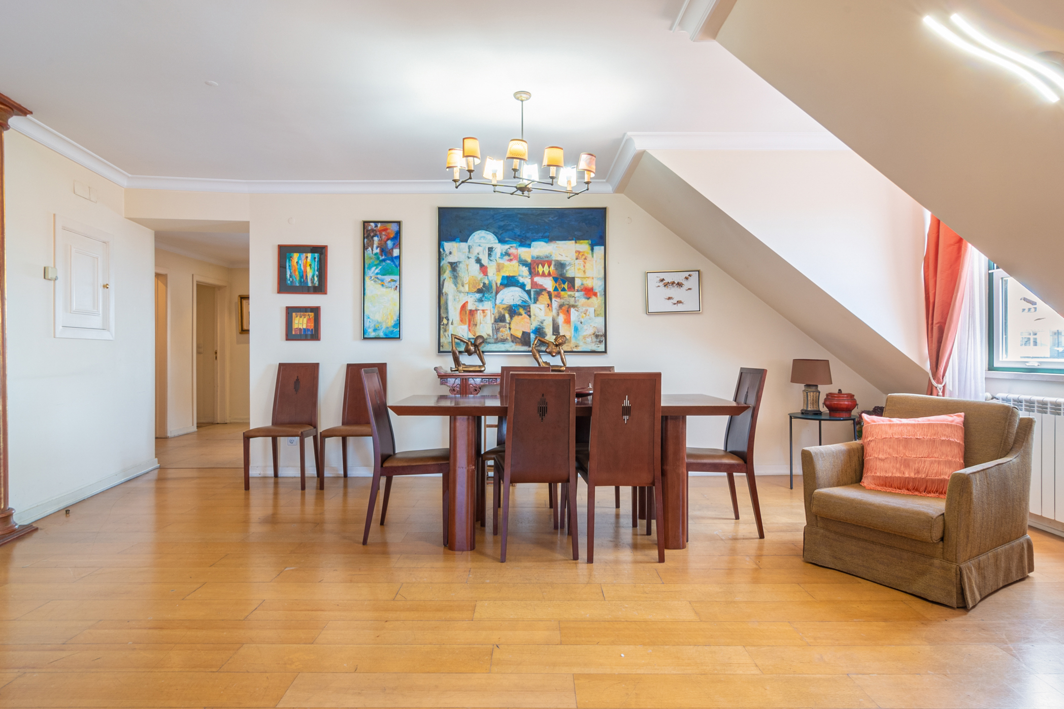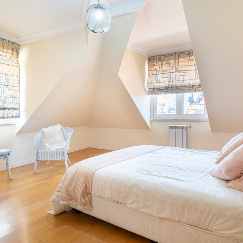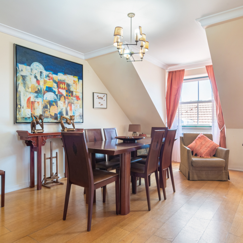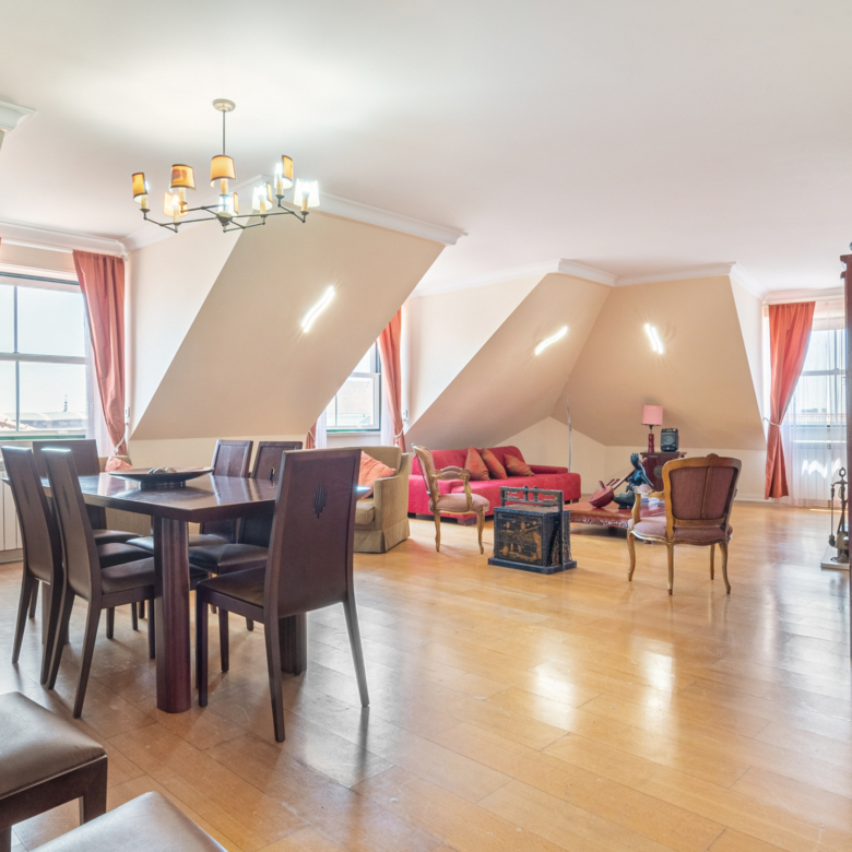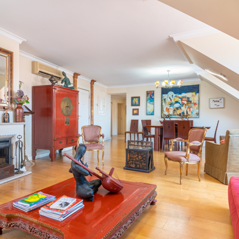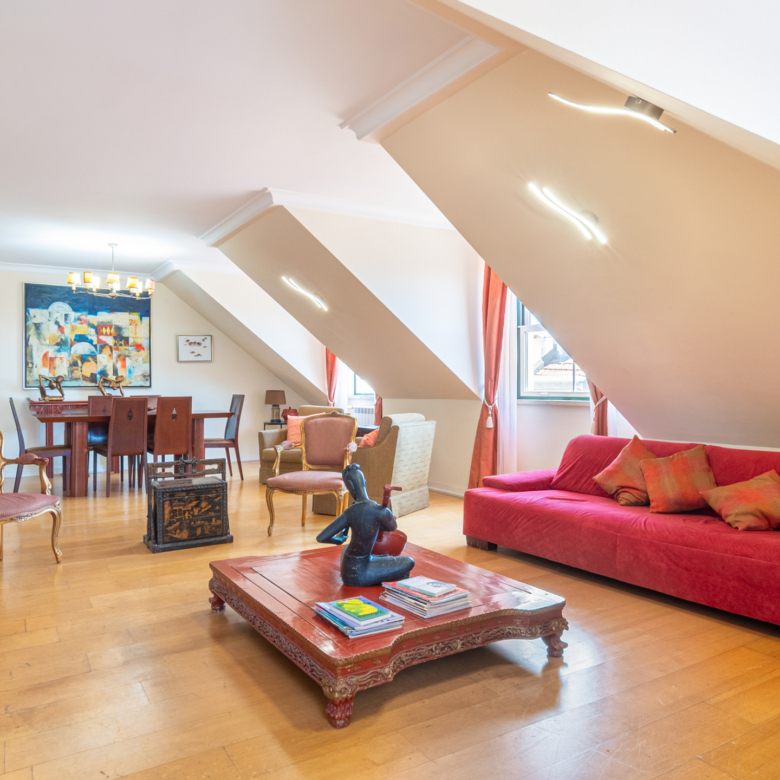 2-bedroom penthouse apartment, 121 sqm of gross floor area and one parking space in Praça Luís de Camões, Lisbon. The apartment comprises a 42 sqm living room, two bedrooms (18 and 17 sqm), and fully equipped kitchen. Apart from having lots of natural light, the apartment has a great view of Luís de Camões Square and Rua Garrett. It also has a storage room.Near Armazéns do Chiado, the apartment is located in an area served by services, shops and public transport. 2-minute walking distance from the Metro Baixa-Chiado underground station, 4 minutes from Rua Garret and Trindade Theatre. 10-minute driving distance from Salesianos de Lisboa, Liceu Pedro Nunes and the riverfront area of Lisbon. 20 minutes from Humberto Delgado Airport in Lisbon.