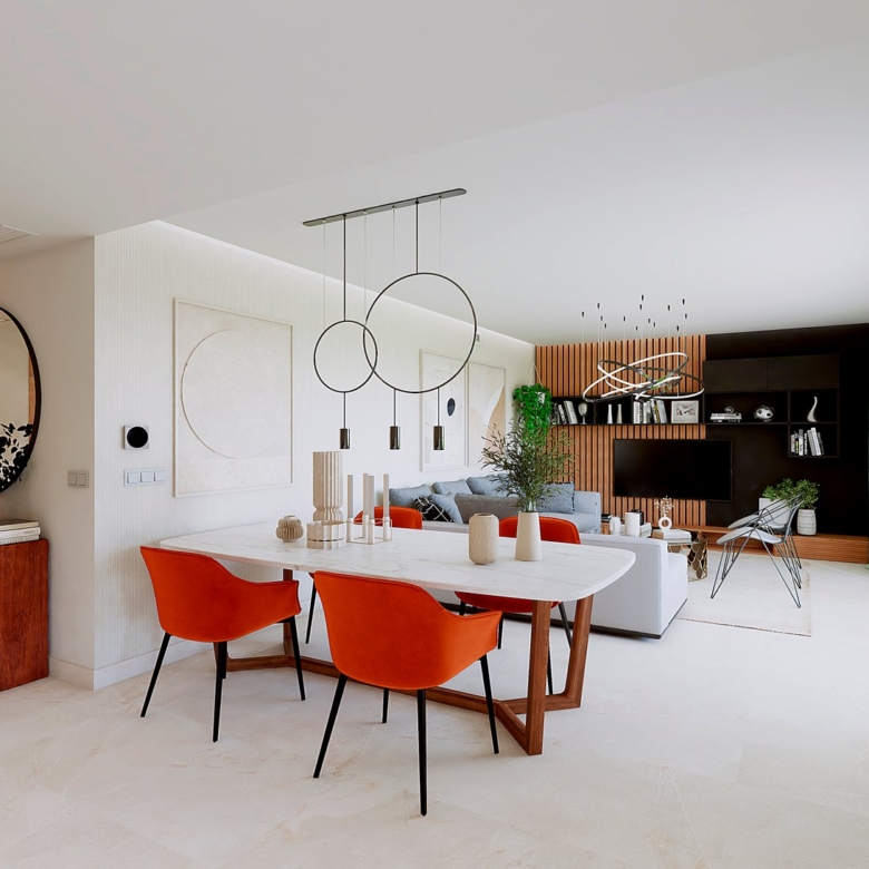 All homes have a modern distribution with the “total living” concept where all the space is utilised, and with a large living room integrating the terrace via the large windows.