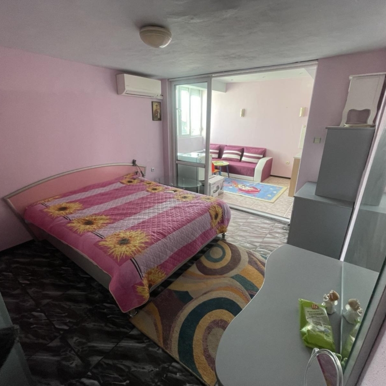 We present to you a spacious, fully furnished 3-room apartment on the 2nd floor of a residential building in the center of the popular Black Sea town of Nessebar – just a few minutes’ walk from the beach and the historic old town.