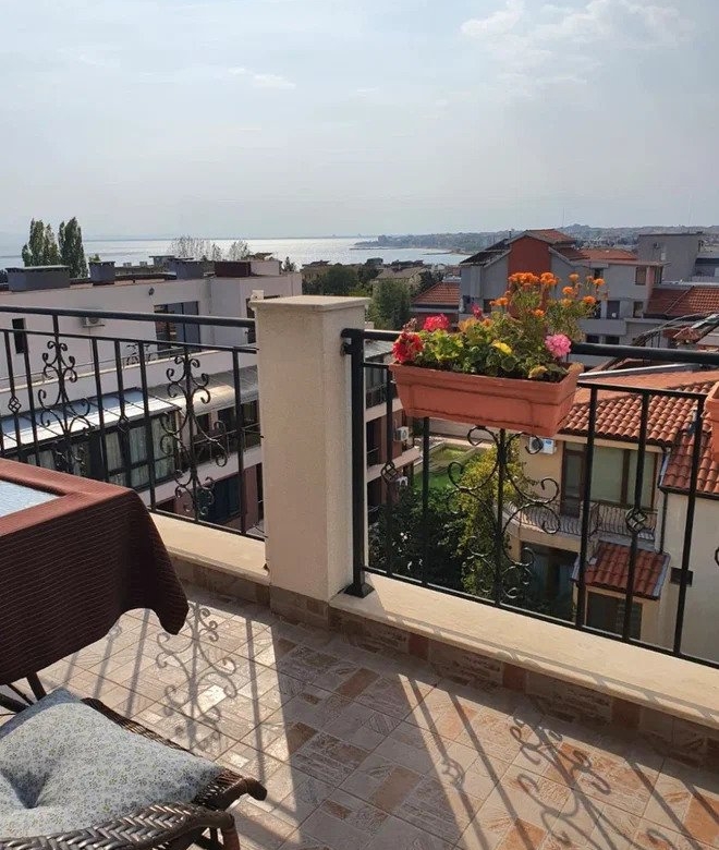 The balcony offers a magnificent view of the sea, Ravda, and the mountains; it does not adjoin other terraces.