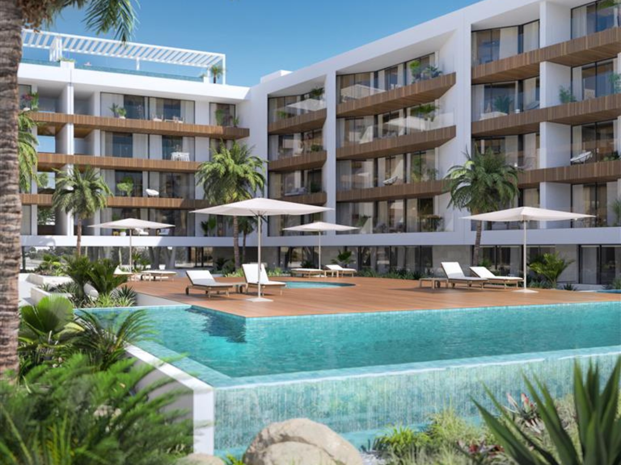 2 Bedroom, new, with 92 sqm (gross floor area), 3 balconies and 2 parking spaces, at the Del Mar Waterfront development, in Olhão, Algarve. Featuring contemporary finishes, equipped kitchen, large balcony, and a great location.The Del Mar Waterfront is a development that was designed to provide unique memories, every day, with the sea as a backdrop, in a context full of gastronomic experiences and the best beaches on the Algarve coast. The development has several communal areas, such as green spaces, a gym and five swimming pools, four of which are outdoor swimming pools, a swimming pool for children and a heated indoor swimming pool, with a solarium area in each of them.The Del Mar Waterfront is located in an area with several beaches nearby in addition to restaurants, shopping areas, parks, and other services.