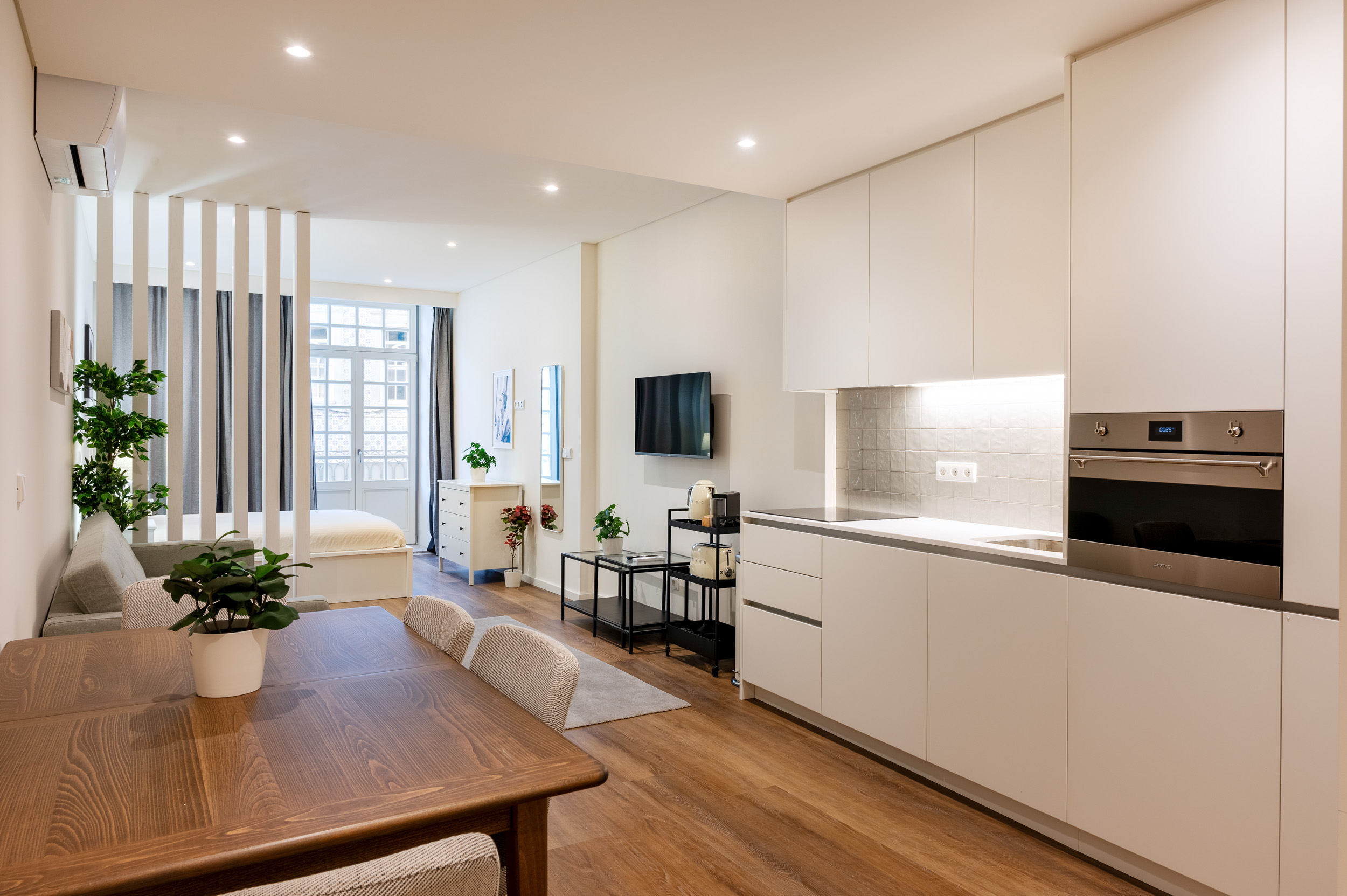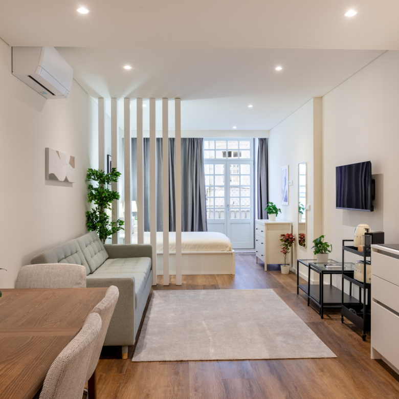Brand new 2-bedroom (T0+T0) apartment, with 84 sqm of gross private area and a balcony in Marquesa Palace residential building, in the historic centre of downtown Porto. All apartments include air-conditioning, double glass windows, fully equipped kitchens and may come fully furnished. The units feature large areas, plenty of natural light and a modern and functional design to meet the needs and comfort of a cosmopolitan and sophisticated life. Most apartments offer fantastic views over the iconic city of Porto.Resulting from a rehabilitation project of a historical building, Marquesa Palace, whose name pays tribute to its past as it was once the home of noble families and formerly known as “Paço da Marquesa”, aims to perpetuate the urban architecture of the 15th century, by maintaining the original characteristics of the property. The use of premium materials and finishings add it comfort, modernity and charm. Most units have a lockoff concept, in which the client acquires a unit composed of two apartments.Located in downtown Porto, near the emblematic São Bento Railway Station and the D. Luís Bridge, the Marquesa Palace building embraces the dynamics of the historic city centre, a UNESCO World Heritage Site, with all main Porto’s attractions within walking distance. This privileged location benefits from a wide range of services, local shops, and cultural facilities, as well as an efficient transport network and quick access to the entire city.Impacto Capital, an international investment company, owner of the Marquesa Palace building and the project promoter, will provide the option of management services. This management comes with the possibility of a fixed return and the management company may be responsible for all the expenses, including maintenance, condominium, internet, water, electricity and insurance, among others.