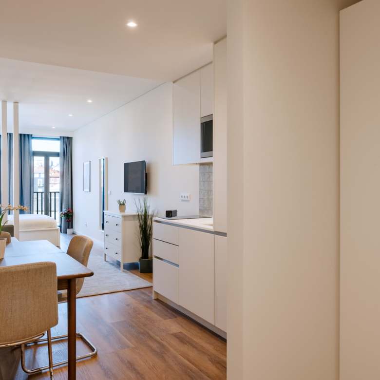 Brand new 2-bedroom (T1+T0) apartment, with 109 sqm of gross private area and a balcony in Marquesa Palace residential building, in the historic centre of downtown Porto. All apartments include air-conditioning, double glass windows, fully equipped kitchens and may come fully furnished. The units feature large areas, plenty of natural light and a modern and functional design to meet the needs and comfort of a cosmopolitan and sophisticated life. Most apartments offer fantastic views over the iconic city of Porto.Resulting from a rehabilitation project of a historical building, Marquesa Palace, whose name pays tribute to its past as it was once the home of noble families and formerly known as “Paço da Marquesa”, aims to perpetuate the urban architecture of the 15th century, by maintaining the original characteristics of the property. The use of premium materials and finishings add it comfort, modernity and charm. Most units have a lockoff concept, in which the client acquires a unit composed of two apartments.Located in downtown Porto, near the emblematic São Bento Railway Station and the D. Luís Bridge, the Marquesa Palace building embraces the dynamics of the historic city centre, a UNESCO World Heritage Site, with all main Porto’s attractions within walking distance. This privileged location benefits from a wide range of services, local shops, and cultural facilities, as well as an efficient transport network and quick access to the entire city.Impacto Capital, an international investment company, owner of the Marquesa Palace building and the project promoter, will provide the option of management services. This management comes with the possibility of a fixed return and the management company may be responsible for all the expenses, including maintenance, condominium, internet, water, electricity and insurance, among others.