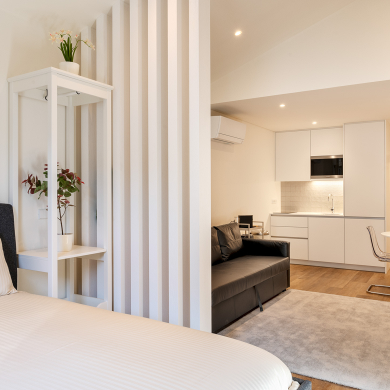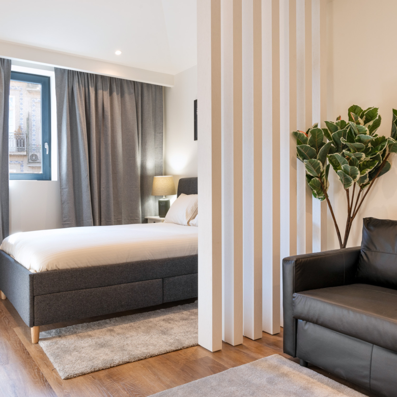 Brand new 2-bedroom (T1+T0) apartment, with 80 sqm of gross private area in Marquesa Palace residential building, in the historic centre of downtown Porto. All apartments include air-conditioning, double glass windows, fully equipped kitchens and may come fully furnished. The units feature large areas, plenty of natural light and a modern and functional design to meet the needs and comfort of a cosmopolitan and sophisticated life. Most apartments offer fantastic views over the iconic city of Porto.Resulting from a rehabilitation project of a historical building, Marquesa Palace, whose name pays tribute to its past as it was once the home of noble families and formerly known as “Paço da Marquesa”, aims to perpetuate the urban architecture of the 15th century, by maintaining the original characteristics of the property. The use of premium materials and finishings add it comfort, modernity and charm. Most units have a lockoff concept, in which the client acquires a unit composed of two apartments.Located in downtown Porto, near the emblematic São Bento Railway Station and the D. Luís Bridge, the Marquesa Palace building embraces the dynamics of the historic city centre, a UNESCO World Heritage Site, with all main Porto’s attractions within walking distance. This privileged location benefits from a wide range of services, local shops, and cultural facilities, as well as an efficient transport network and quick access to the entire city.Impacto Capital, an international investment company, owner of the Marquesa Palace building and the project promoter, will provide the option of management services. This management comes with the possibility of a fixed return and the management company may be responsible for all the expenses, including maintenance, condominium, internet, water, electricity and insurance, among others.