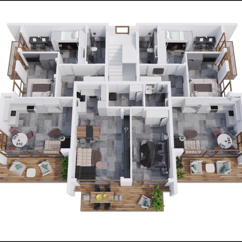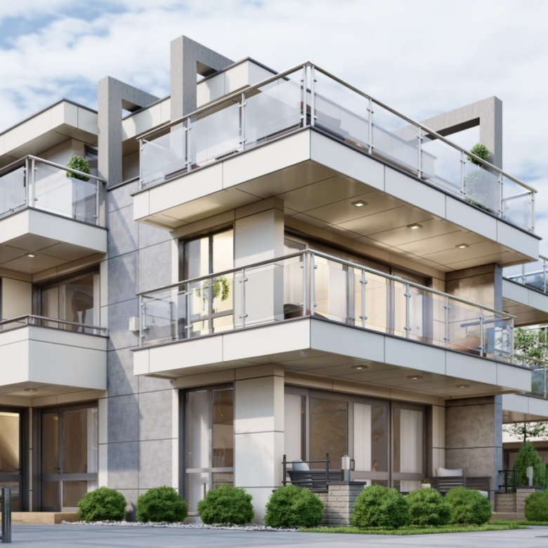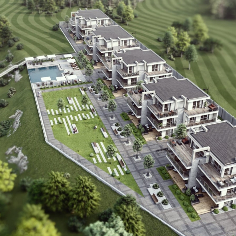 We offer 36 apartments for sale, ranging from 47 to 145 m². The complex consists of five buildings.