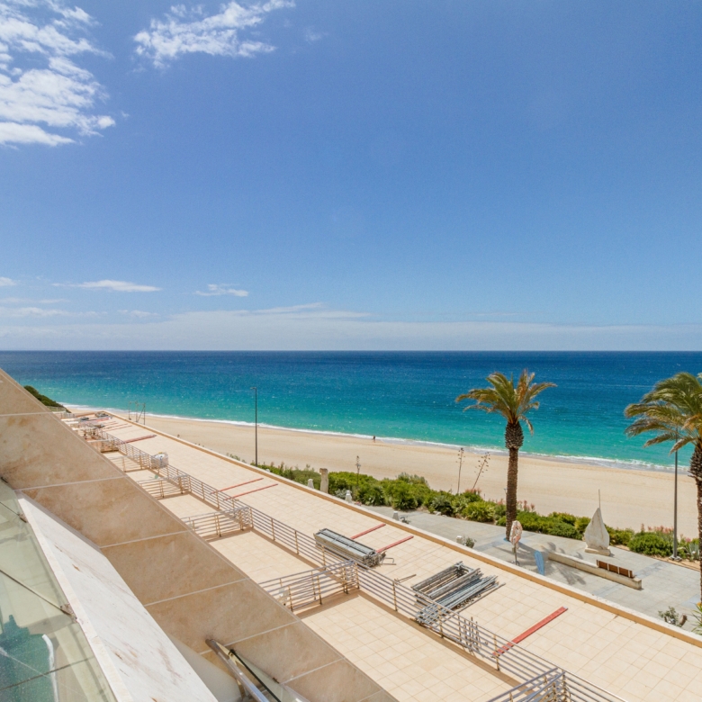 2+1-bedroom apartment with 144 sqm of gross private area, frontal sea view, two parking spaces, located in the Mar da Califórnia condominium, in Praia da Califórnia, Sesimbra.The apartment is in excellent condition, facing south, with a bright living and dining room with access to a 16 sqm balcony and dining area, a fully equipped kitchen, a guest bathroom with a shower, one suite with a closet area, and two bedrooms with a shared bathroom. One of the bedrooms has built-in wardrobes and a sea view, while the other has a window facing the interior of the building. The apartment also has a storage room.Located in front of Praia da Califórnia, with excellent access and a wide range of commerce. It is 10 minutes away from Forte de Santiago de Sesimbra and Sesimbra Municipal Market. Within a 5-minute driving distance from Praia do Ribeiro do Cavalo and Sesimbra Naval Club, and 30 minutes away from Nossa Senhora da Arrábida Hospital, Arrábida beaches, and Setúbal. It is also located 1 hour away from the airport and Lisbon.