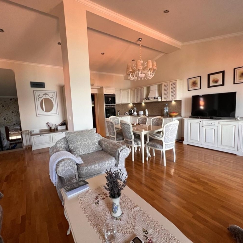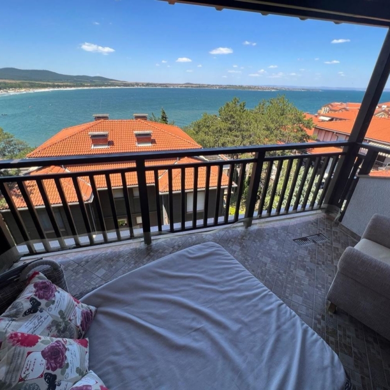 Luxurious two-room apartment with panoramic sea views in a frontline complex in Sozopol. The apartment is located on the fourth floor and has an area of 114 m². It is a spacious property suitable for both permanent residence and vacation. The apartment has a comfortable and functional layout, including a living room with dining area and kitchenette, two spacious bedrooms, a bathroom with WC, an entrance hall, and two beautiful, attractive terraces with impressive sea views. The complex offers a rich infrastructure for comfortable living and relaxation. Here, you will find many swimming pools and children’s pools, a spa for relaxation and wellness, playgrounds, tennis courts, and sports fields for an active lifestyle. The complex also has an amphitheater for cultural events and entertainment. There are shops, restaurants, cafes, and even a pizzeria within the complex, making your stay even more comfortable. You can enjoy delicious pizza directly on the property or go shopping without having to travel far. This apartment is the perfect combination of space, comfort, and amenities. The panoramic sea view adds a special charm and romance to your life on the Black Sea coast. Don’t miss the opportunity to purchase this gem in Sozopol and enjoy an incredible life by the sea in a prestigious complex.