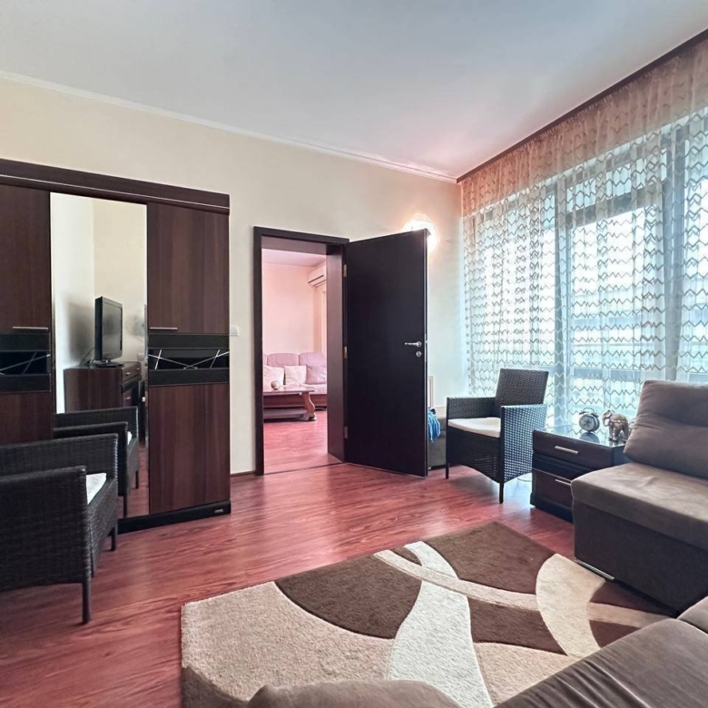 We offer for sale a stylish three-room apartment in the “Vavilon” residential complex in Sunny Beach. The apartment is modernly renovated, furnished with high-quality furniture, and has two bathrooms with shower cabins. The total area is 120 m². A spacious terrace with a partial sea view adds extra appeal to this offer.