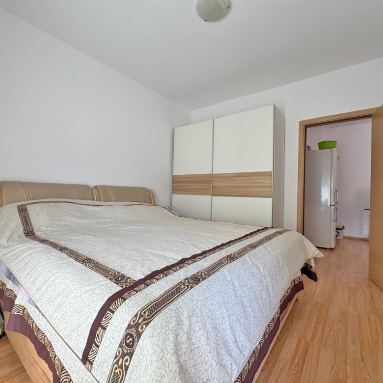 The apartment is located in a well-maintained building within the gated residential complex and offers a total area of approximately 77m2. It is situated on the 3rd floor and consists of a bright living room with a kitchenette, two separate bedrooms, a bathroom with a shower and toilet, as well as a balcony overlooking the complex.