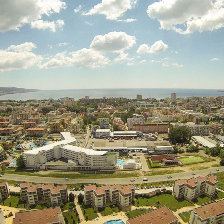 The Holiday Fort Golf Club is located in an excellent position on the western edge of the popular resort of Sunny Beach, just about 900 meters from the beach. The complex is directly opposite the Action Aquapark, one of the largest water parks in Bulgaria, and close to the main boulevard of Sunny Beach, which offers numerous shopping, dining, and entertainment options.