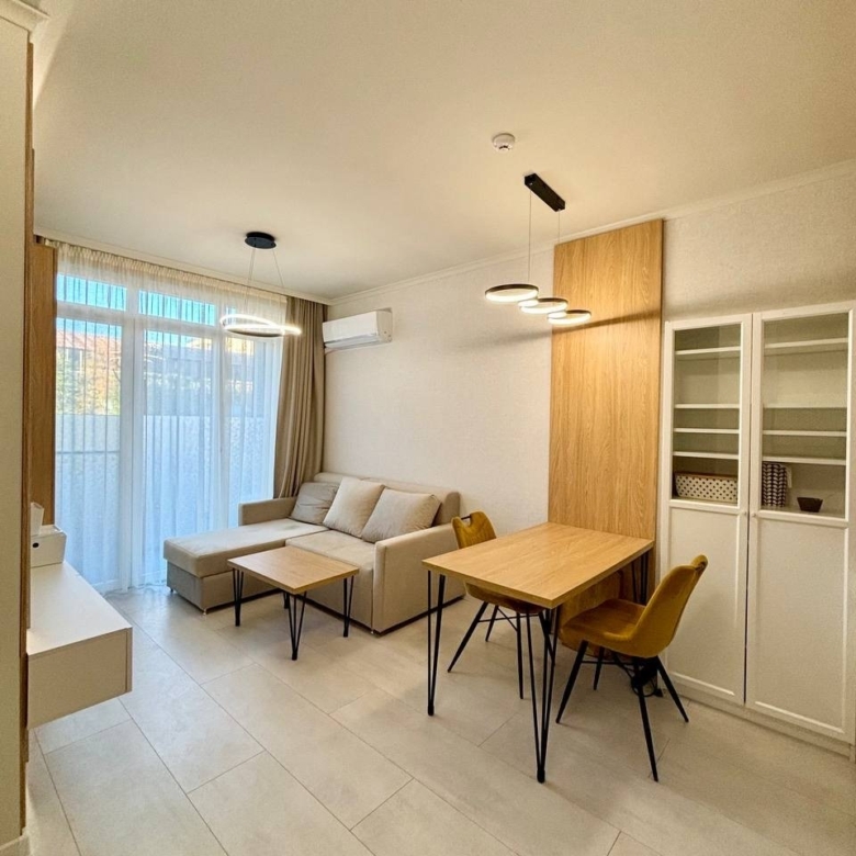 We offer to your attention a beautifully styled apartment with 2 bathrooms and 2 bedrooms in the Dominiko Complex on the ground floor in Sunny Beach. This is a perfect property that combines comfort and lifestyle. The location is just 800m from the sea. The annual maintenance fee is 912 EUR.