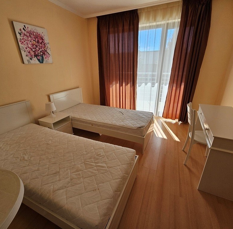 This is an excellent two-room apartment with a sea view, located on the third floor of the New Line Village complex at the foot of the mountains, on the outskirts of Sunny Beach, Bulgaria. The apartment is bright and spacious and has two balconies, one of which offers a beautiful sea view. Total area – 80 m².