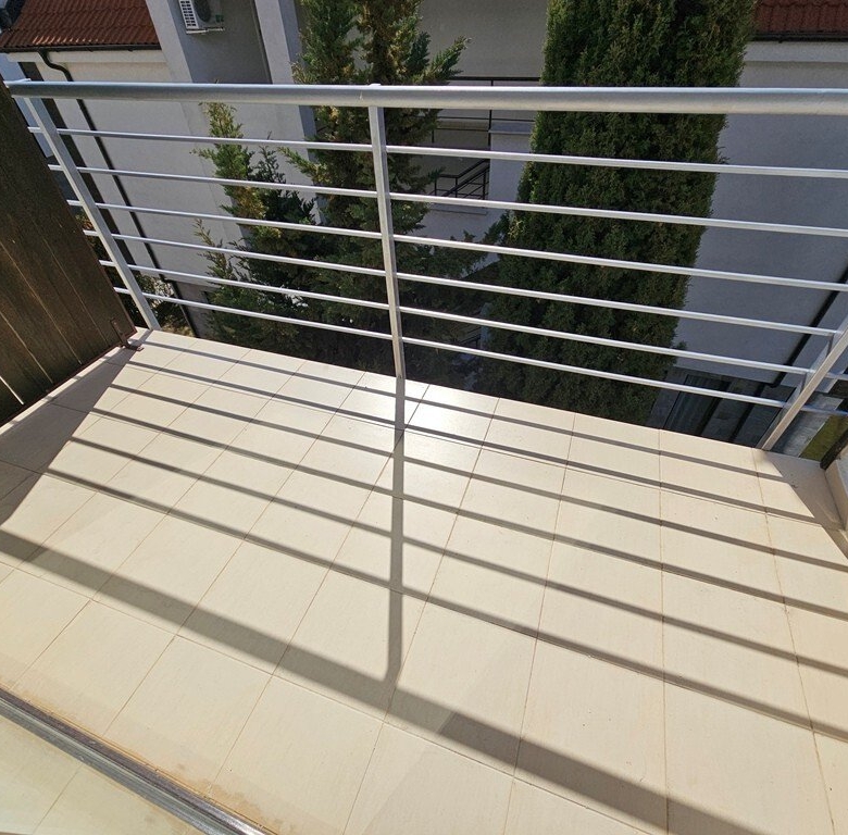 The apartment features a spacious living room with a kitchenette, which provides access to a beautiful balcony with sea and mountain views. Both bedrooms are bright and sunny. There is a second balcony overlooking the grounds of the residential complex. The apartment is equipped with two air conditioning units and has a bathroom with a shower cabin.