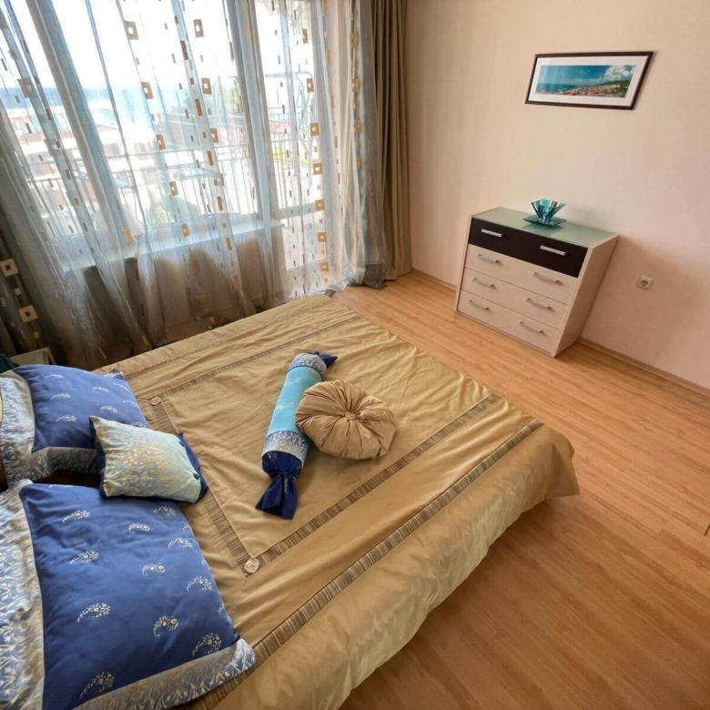 For sale is a spacious apartment with 2 bedrooms and a living room in the well-maintained complex Messembria Fort in Elenite, just a few minutes’ walk from the beach.