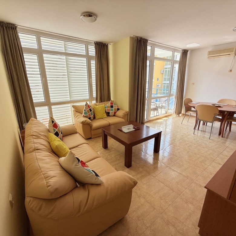 For sale is an attractive 3-room apartment with a living area of 85 m² in the residential complex “Elit 1” at Sunny Beach. The apartment is located on the 2nd floor and is fully furnished, so it is ready for immediate move-in.