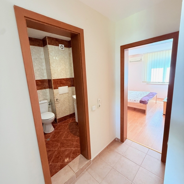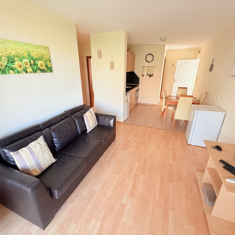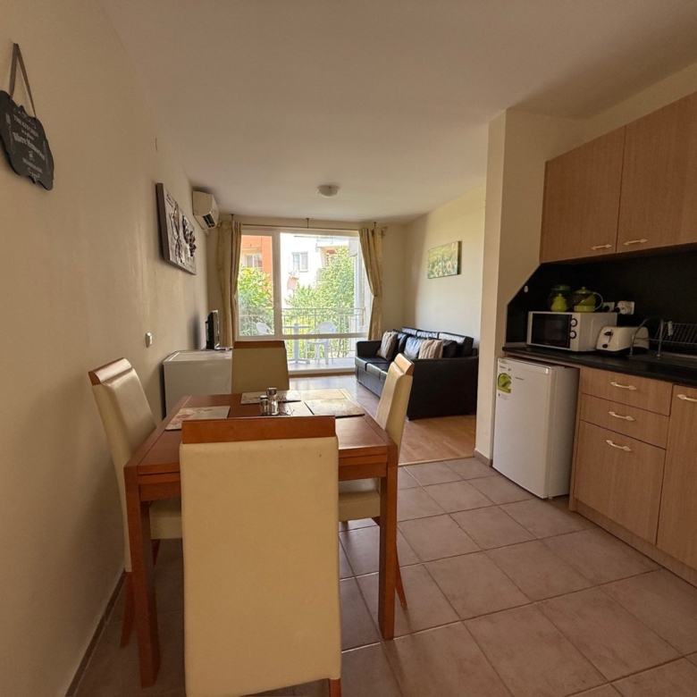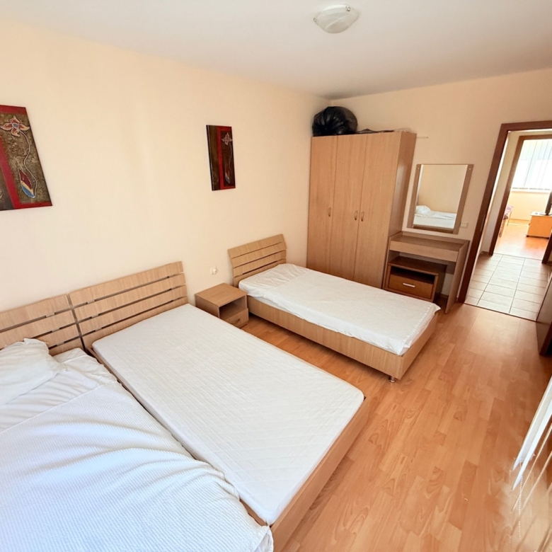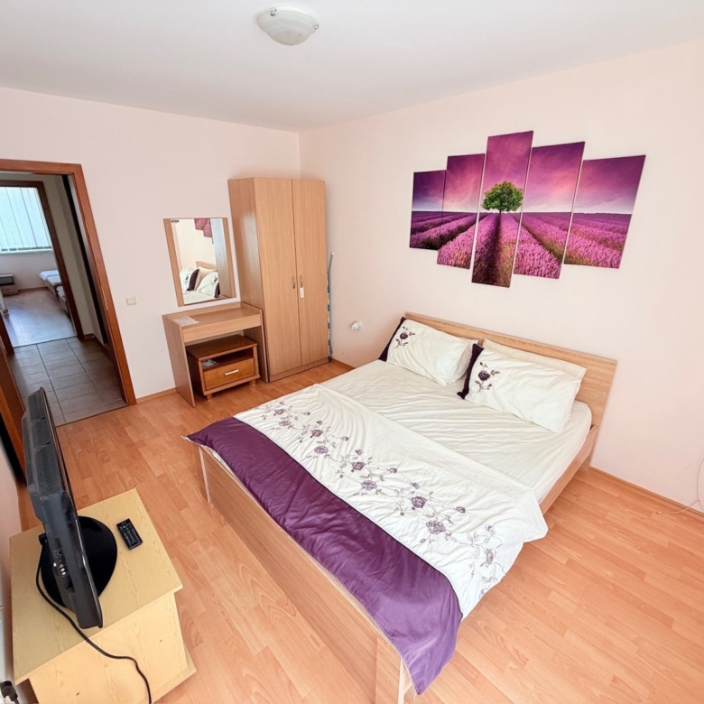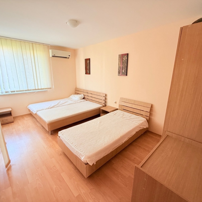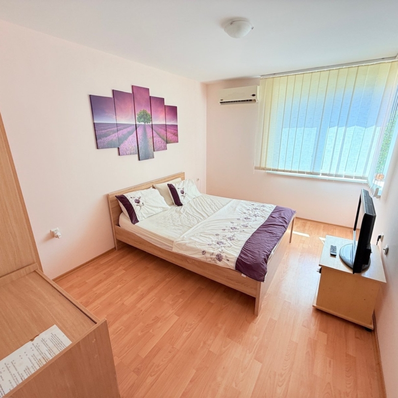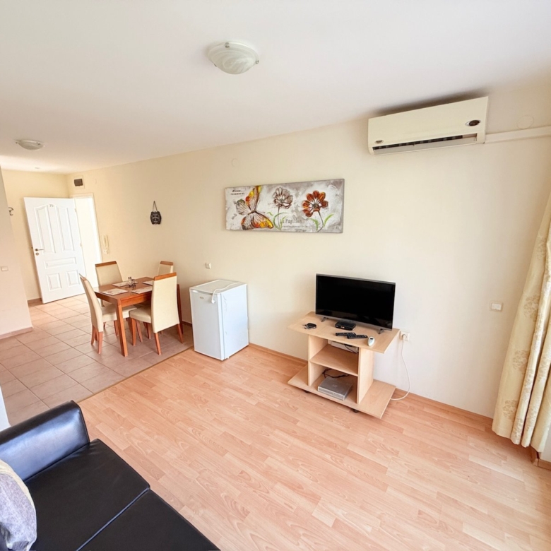 The three-room apartment is located within the closed residential complex Nessebar Fort Club in Sunny Beach, directly opposite Action Aquapark and only about 10-15 minutes’ walk from the sandy beach.