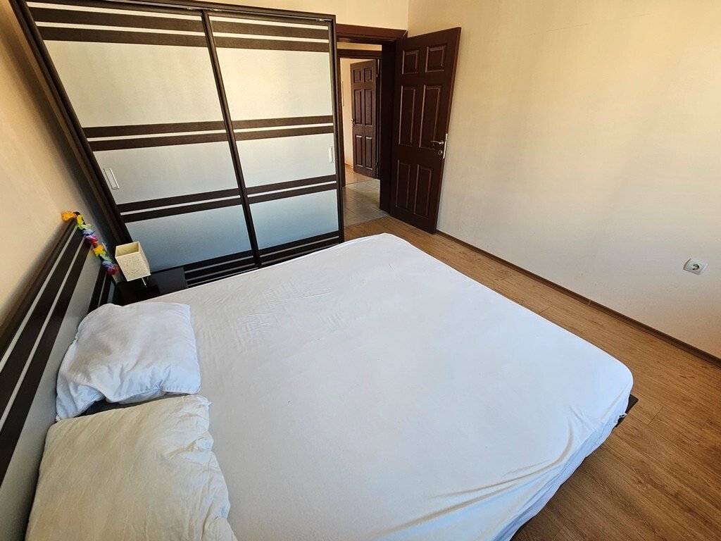 We offer you a beautiful, fully furnished two-bedroom apartment located on the third floor of the Antares Complex. The complex is situated in the northern part of Sunny Beach, Bulgaria. The apartment is bright and spacious, featuring two balconies, one of which overlooks the pool. Total size: 92 m². The apartment is just a 5-minute walk from the beautiful beach and a 10-minute walk from the resort’s center. Numerous amenities are available on-site and nearby.