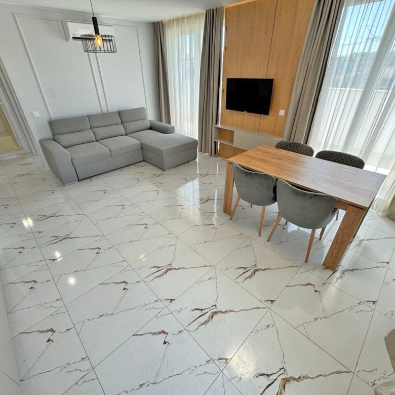 High-quality tiled flooring throughout the penthouse provides durability and easy maintenance. Wooden parquet in the bedrooms adds warmth and coziness.