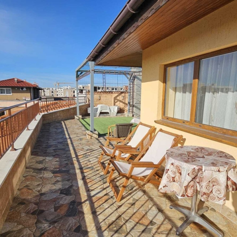 Well-developed roads provide quick access to surrounding towns. The lively resort of Sunny Beach is just 3 km away and offers numerous leisure activities. The historic old town of Nessebar (UNESCO World Heritage Site) is approximately 10 km away and a popular excursion destination.