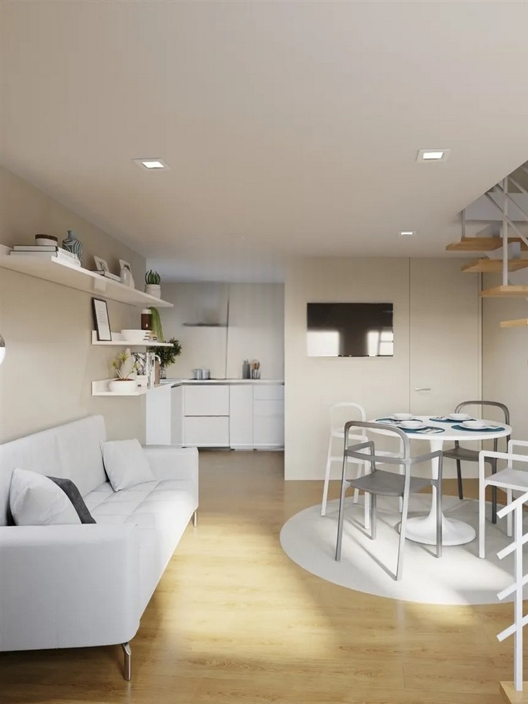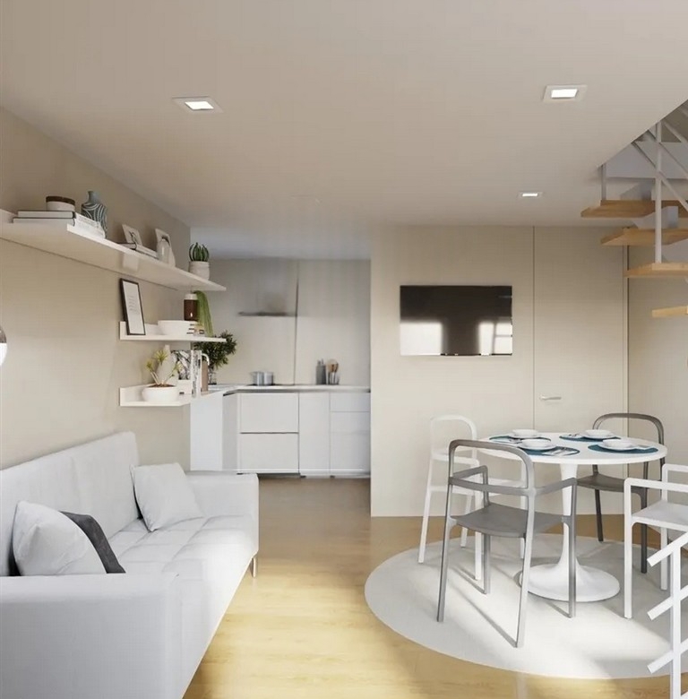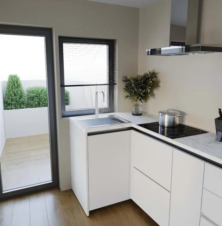 Divided over 2 floors. On the ground floor, you will find the living room, an equipped kitchen, a service bathroom and small yard. On the upper floor, we have 2 bedrooms that share a bathroom and large windows allowing an optimal entry of natural light.
