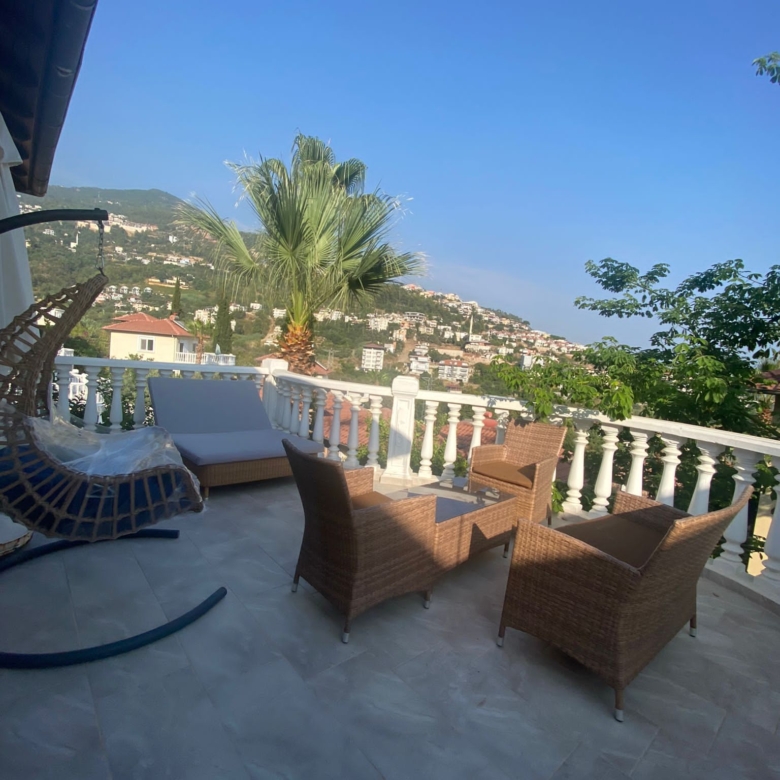 South-facing terrace with panoramic views of Alanya’s green hills