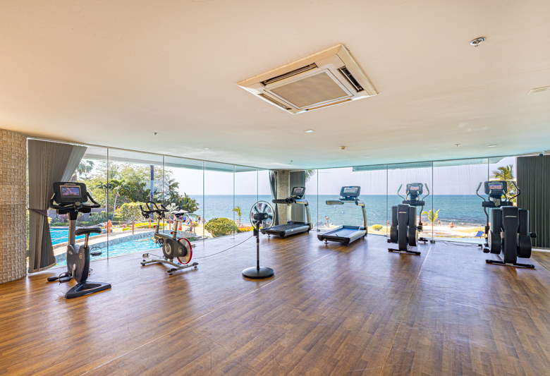 Fitness & Wellness: A state-of-the-art gym and sauna overlooking the ocean.