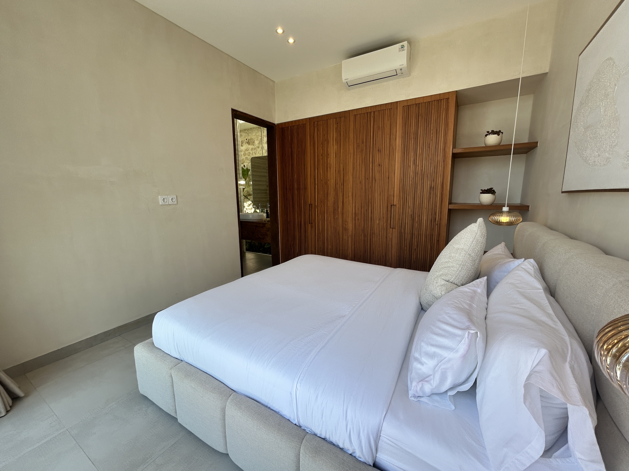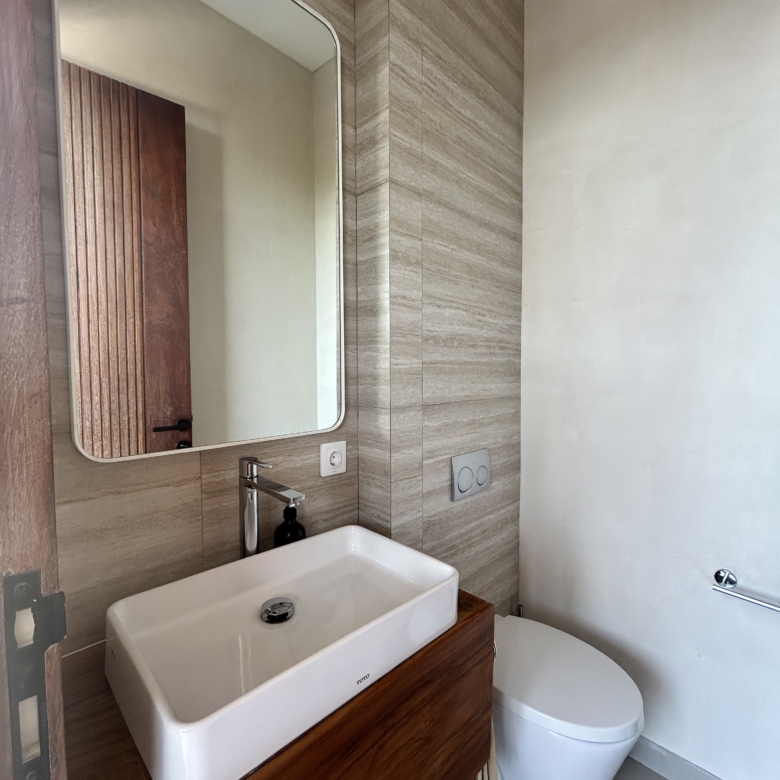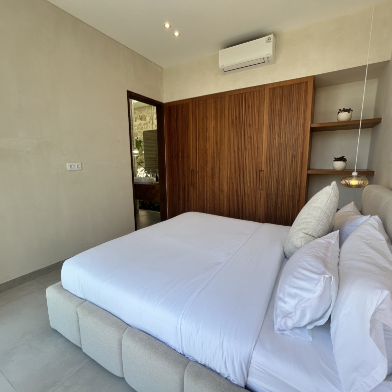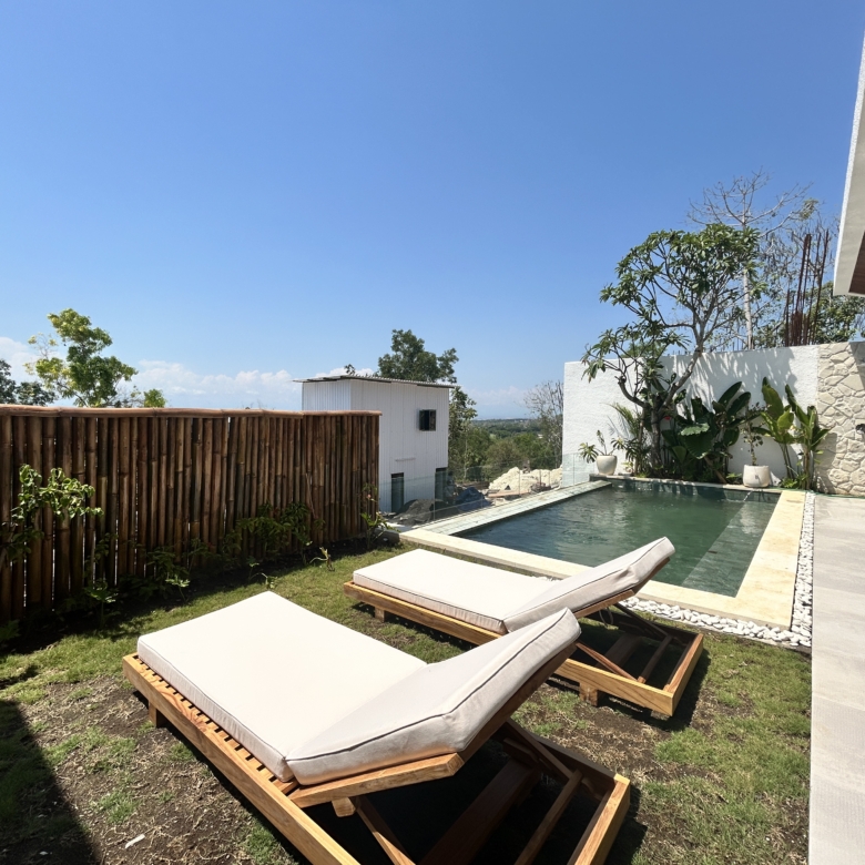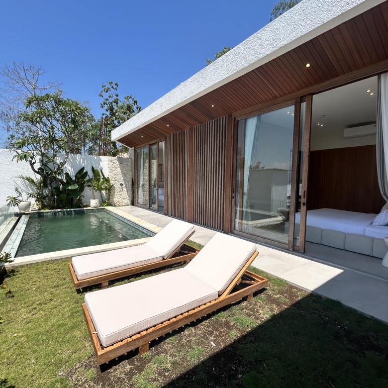 A modern tropical villa designed for high-end living and investment—featuring ocean views, rainwater harvesting, and a rooftop patio for Bali sunsets. Located in the Tourism Zone of Padang Linjong, this villa is surrounded by the area’s best cafés, gyms, beaches, and golf course. Its enclosed living and kitchen areas, elegant design, and lush garden make it a peaceful yet central Canggu retreat.