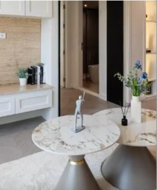 It’s a solid 116.5 sqm, which means plenty of room to spread out — especially for a condo in Bangkok. Three bedrooms and three bathrooms make it practical whether you’ve got a family, need a guest room, or want a home office. The layout feels open, with the living and dining areas flowing naturally.