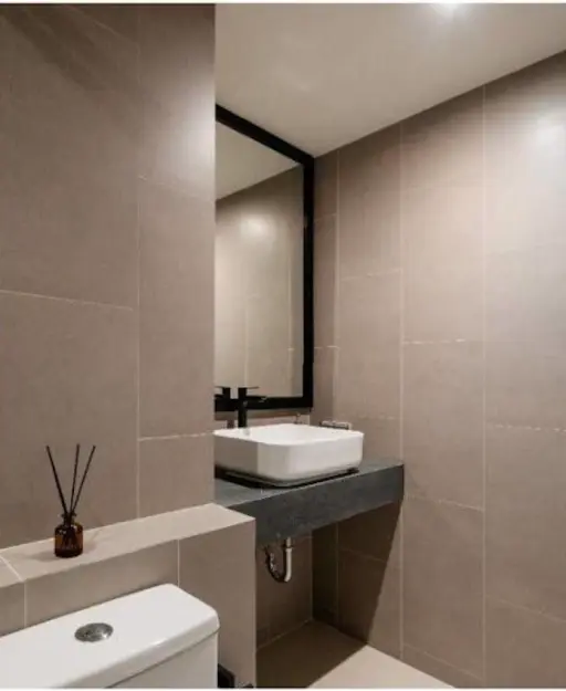 Bathrooms stick with the minimalist, modern look — beige tiles, black fixtures, and clever storage that keeps things clutter-free. The glass partition with a black frame adds character without closing off the space. Also, there’s a one-car garage, which is a nice bonus for Phra Khanong Nuea.