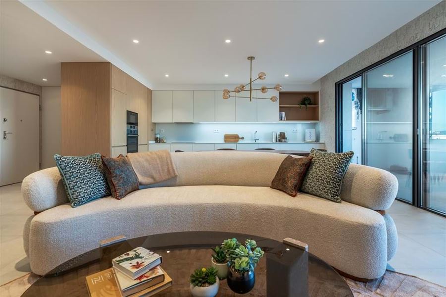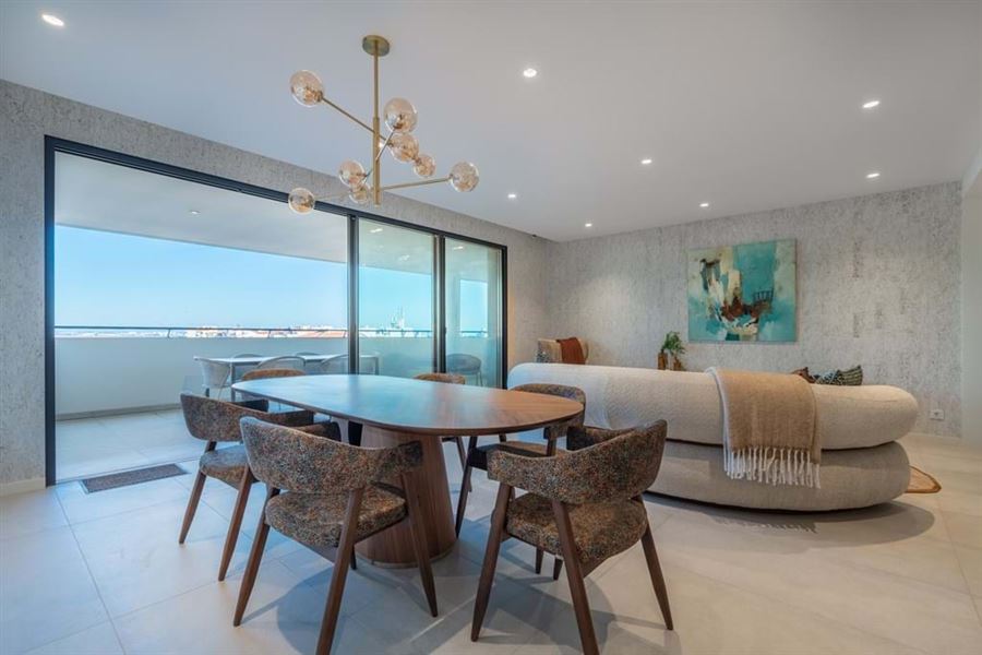 This luxurious three bedroom apartment is located on a new development in a scenic area of Lagos, in the western Algarve. A short two minute drive from the beach, and close to the historic city centre, this is a highly-sought after position. The apartment includes three bedrooms, (all with fitted wardrobes) two bathrooms (both with underfloor heating) and an open plan living / dining room with access to a terrace to enjoy the beautiful views of Lagos. The fully-equipped kitchen features a ceramic hob, oven, microwave, refrigerator, dishwasher and washing machine.