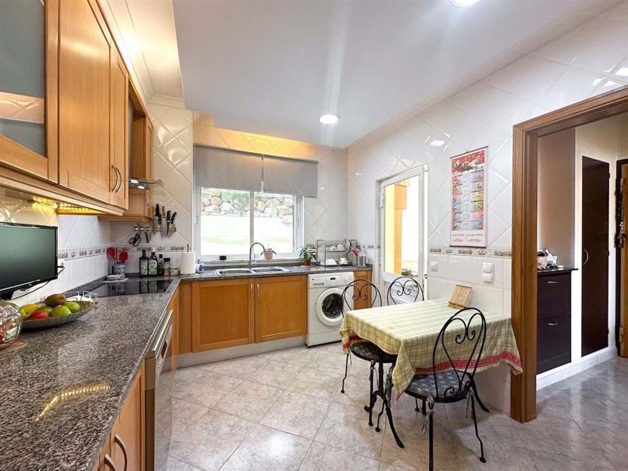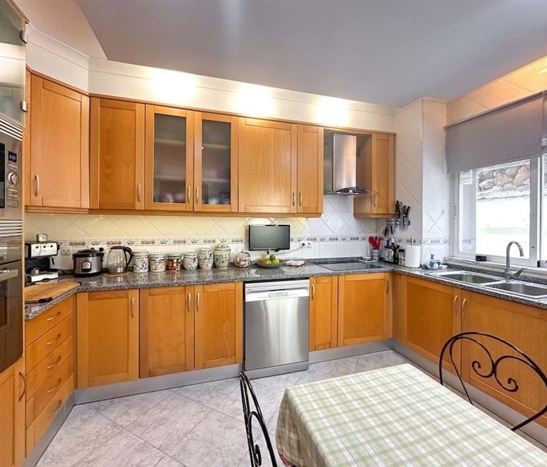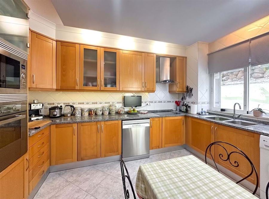 The fully equipped kitchen is an invitation to culinary creativity, allowing you to explore your dining talents while enjoying a stunning panoramic view.