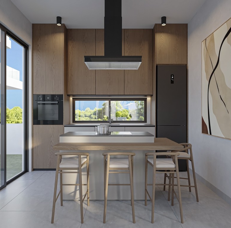 Designed for effortless living, the homes include energy efficiency class “A”, alarm system, electric car charger, and provisions for A/C and central heating. Tailor-made kitchens, premium ceramic finishes, and branded sanitary ware complete the sophisticated design.