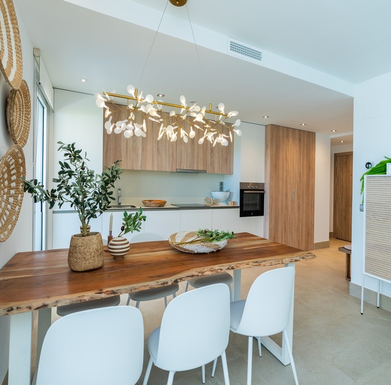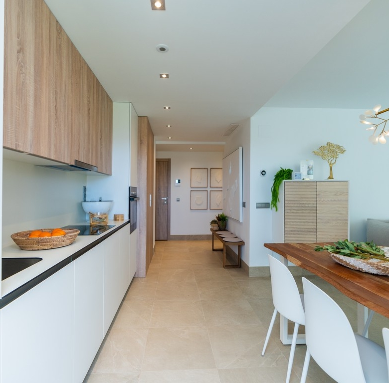 The homes have a modern distribution with the “total living” concept where all the space is utilised, and with a large living room integrating the terrace via the large windows.