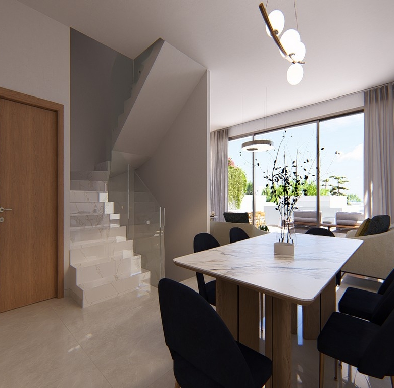 Meteora Residences is a modern residential complex located in the city centre of Paphos, Cyprus. The development comprises two blocks of 2-bedroom apartments, 3-bedroom maisonettes, and twenty-nine 3-bedroom villas, designed with contemporary architecture and functional layouts. Residents also benefit from a communal swimming pool, creating a relaxed community environment.