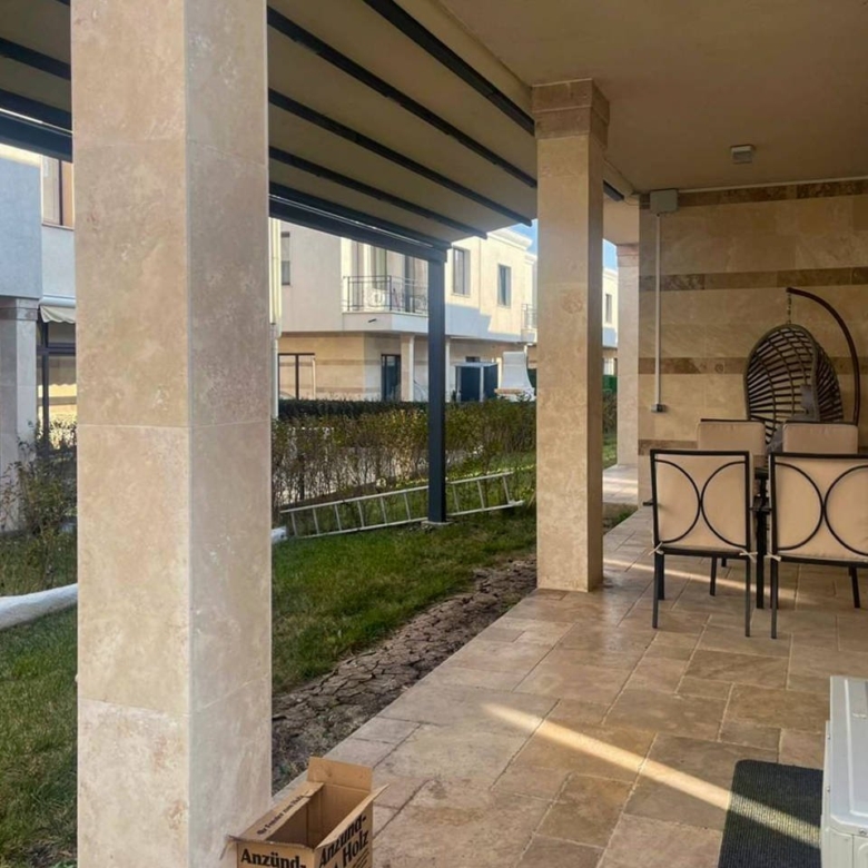 Hot Offer! Two-story single-family house with an area of 173 m², panoramic glazing, and a terrace leading to the green courtyard. The ground floor features a spacious living room with a studio kitchen, equipped with Bosch appliances, as well as a bathroom. The second floor is dedicated to the private zone: three bedrooms with walk-in closets and two bathrooms with shower cabins. The designer renovation has been carried out in light tones with accents on natural materials, and the furniture has been selected in a modern style. The house is fully move-in ready – just enjoy living by the sea.