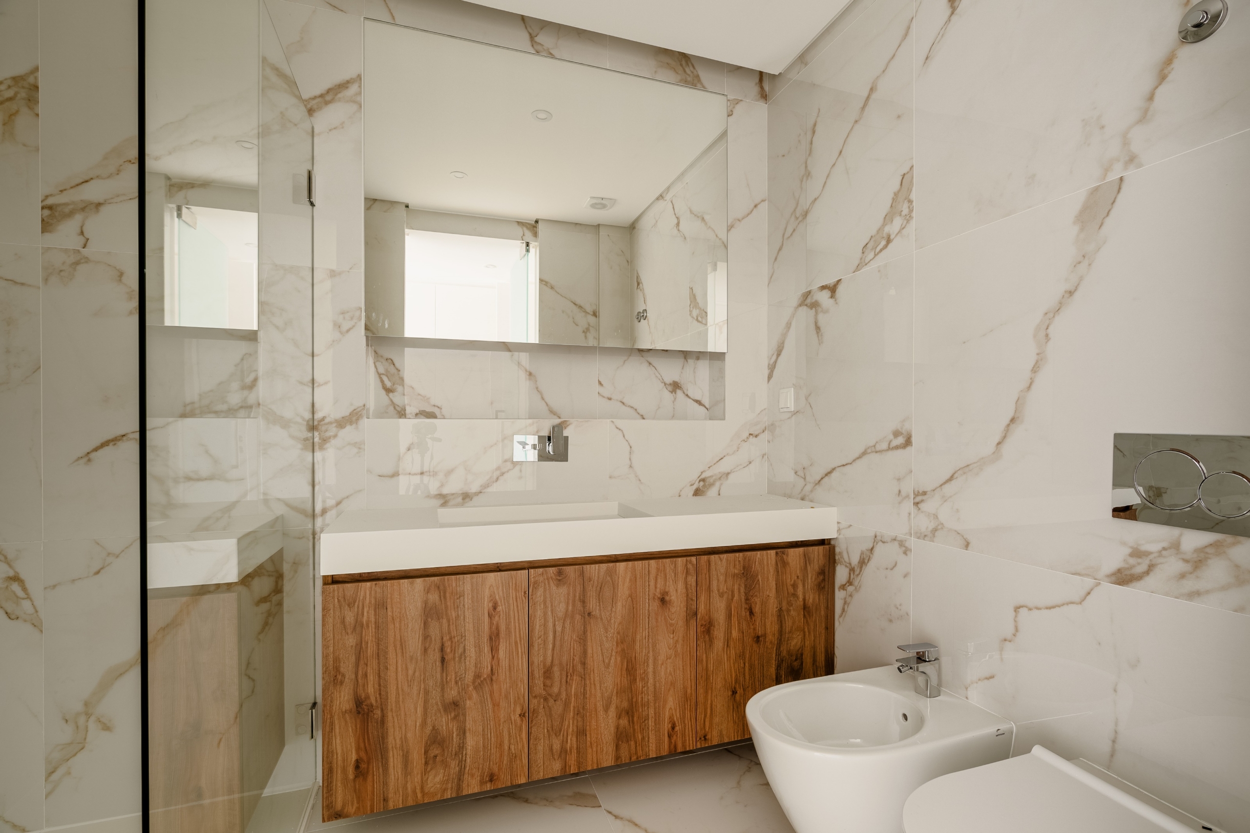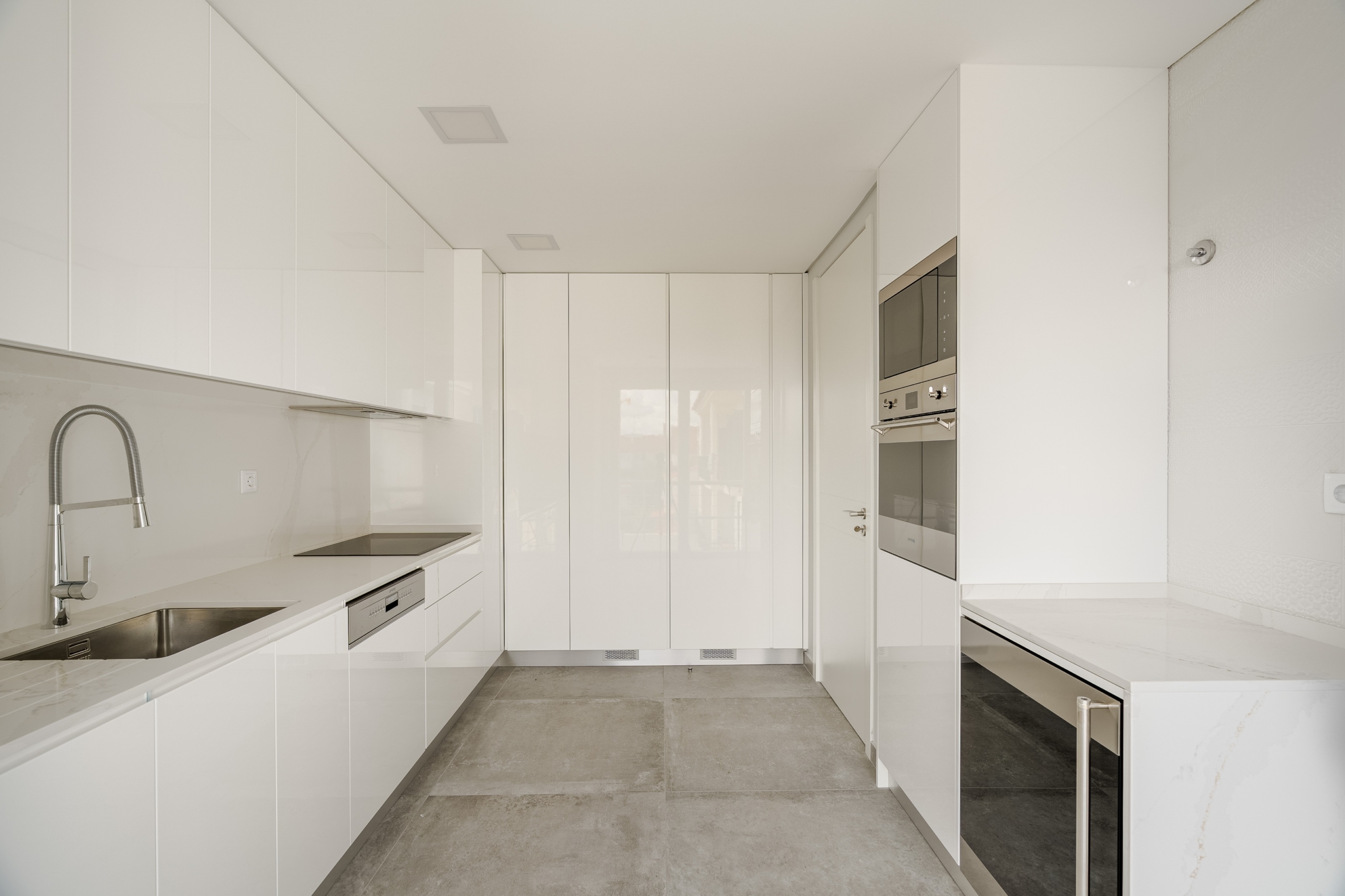 Brand new 3-bedroom apartment with 185 sqm of gross private area and 57 sqm of gross dependent area, with a garage, located in a residential street, in Carcavelos, Cascais. The apartment features a living room with access to a balcony, a fully fitted kitchen with SMEG appliances, also with access to a balcony, a guest bathroom, and three suites. Due to the size and layout of the living room, it is possible to divide the space and create an independent office area or TV room. The apartment offers excellent finishes, electric blinds, central ducted air conditioning, home automation system, and central vacuum. It includes three parking spaces in the garage.Excellent location in a quiet area, a 6-minute drive from Saint Julian’s School and Nova School of Business and Economics, easy access to the waterfront road Marginal, Carcavelos train station, and Carcavelos Beach. It is a 30-minute drive from the center of Lisbon and the Airport.