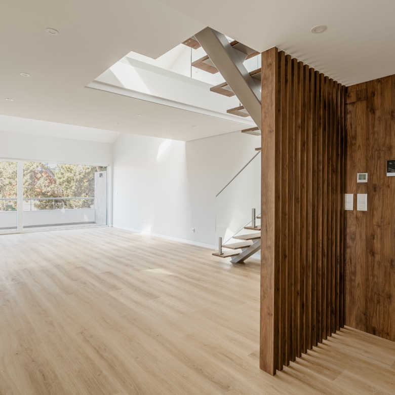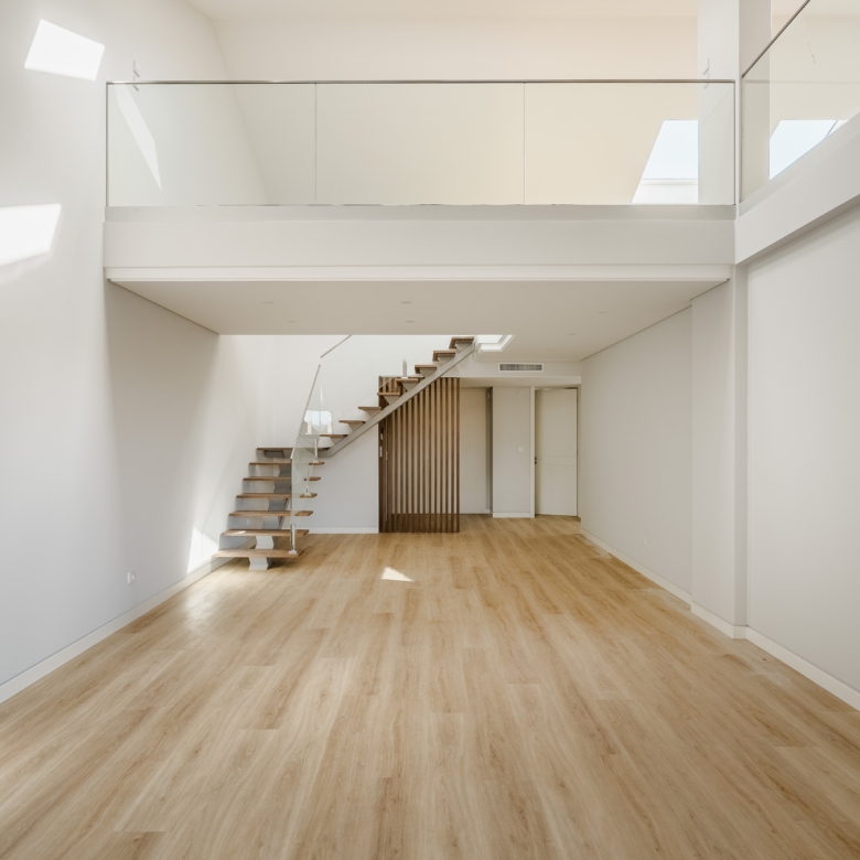 3+1 bedroom duplex apartment with 153.6 sqm of gross private area and 89.5 sqm of dependent area – 50 sqm of mezzanine, a balcony of 11.5 sqm, and parking space of 28 sqm, ready to move in, located in a residential street in a new building, in a highly desirable location in Carcavelos, Cascais. It consists of a living room with double-height ceiling and access to a balcony, a fully equipped kitchen with Smeg appliances, also with access to the balcony, a guest bathroom, and three suites. On the top floor, there is a mezzanine with a spacious area with potential and pre-installations to be divided into two bedrooms or an office. Views over the living room with lots of natural light coming from the large minimalist windows. Due to the size and layout of the living room, it is possible to divide the space and create an independent office or TV room. Excellent finishes, electric shutters, central air conditioning through ducts, home automation system, central vacuum. Three parking spaces.Excellent location in a quiet area, a 6-minute drive from Saint Julian’s School and the Nova School of Business and Economics, with easy access to the waterfront (Marginal), Carcavelos train station, and Carcavelos Beach. It is a 30-minute drive from the center of Lisbon and the airport.
