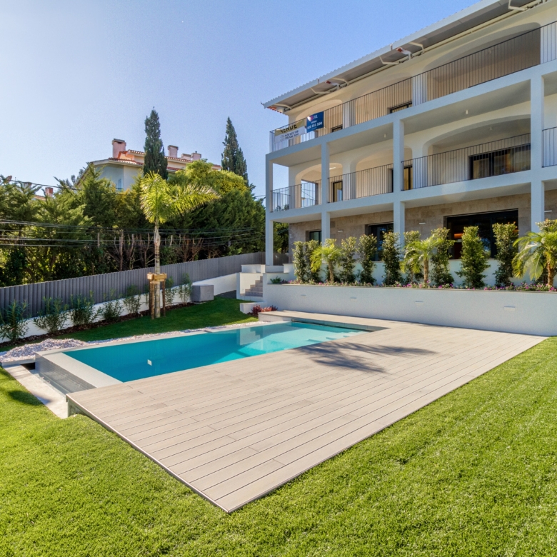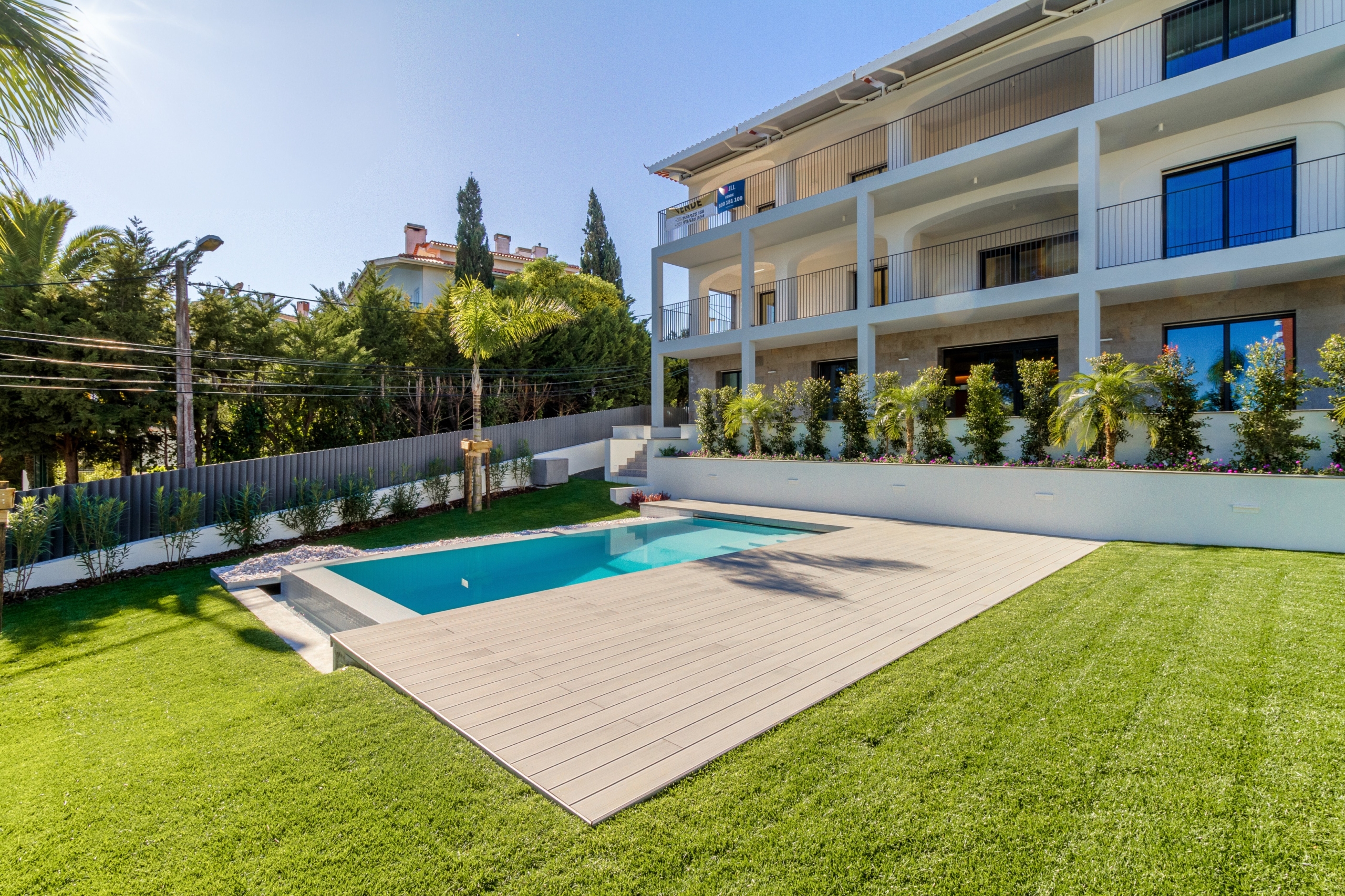 3 bedroom apartment with 343 sqm of private gross area, in a new condominium with garden and swimming pool, located in Monte Estoril, Cascais. Comprising a living room with 68 sqm, with plenty of natural light and access to a terrace facing the garden, a kitchen with 19 sqm equipped with Miele appliances, laundry, guest bathroom and three bedrooms: two bedrooms with bathroom and one bedroom en suite with walk in closet. In terms of extras, the apartment has a video intercom, electric shutters, air conditioning and central heating. Two indoor parking spaces and one outside parking space.New development of 3 luxury apartments with design and excellent finishes, garden and swimming pool, in Monte Estoril, Cascais.5 minutes walking distance from Estoril beaches, train station, transport, shops and services. 3 minutes driving distance from the German School (Deutsche Schule Lissabon), 5 minutes from Escola Salesiana do Estoril, and less than 10 minutes from SAIS College (Santo António International School). Close to Estoril golf, the Tennis Club and other services. Easy access to the A5, A16 highway and Avenida Marginal. 15 minutes from the center of Sintra and 30 minutes from Lisbon Humberto Delgado Airport.