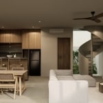 Spanning 180 square meters of land, the villa features a sleek two-level layout. The ground floor includes an enclosed living room, a simple kitchenette, and a spacious bedroom with an ensuite bathroom. The mezzanine serves as the second bedroom, also with its own ensuite, ensuring privacy and comfort for all.