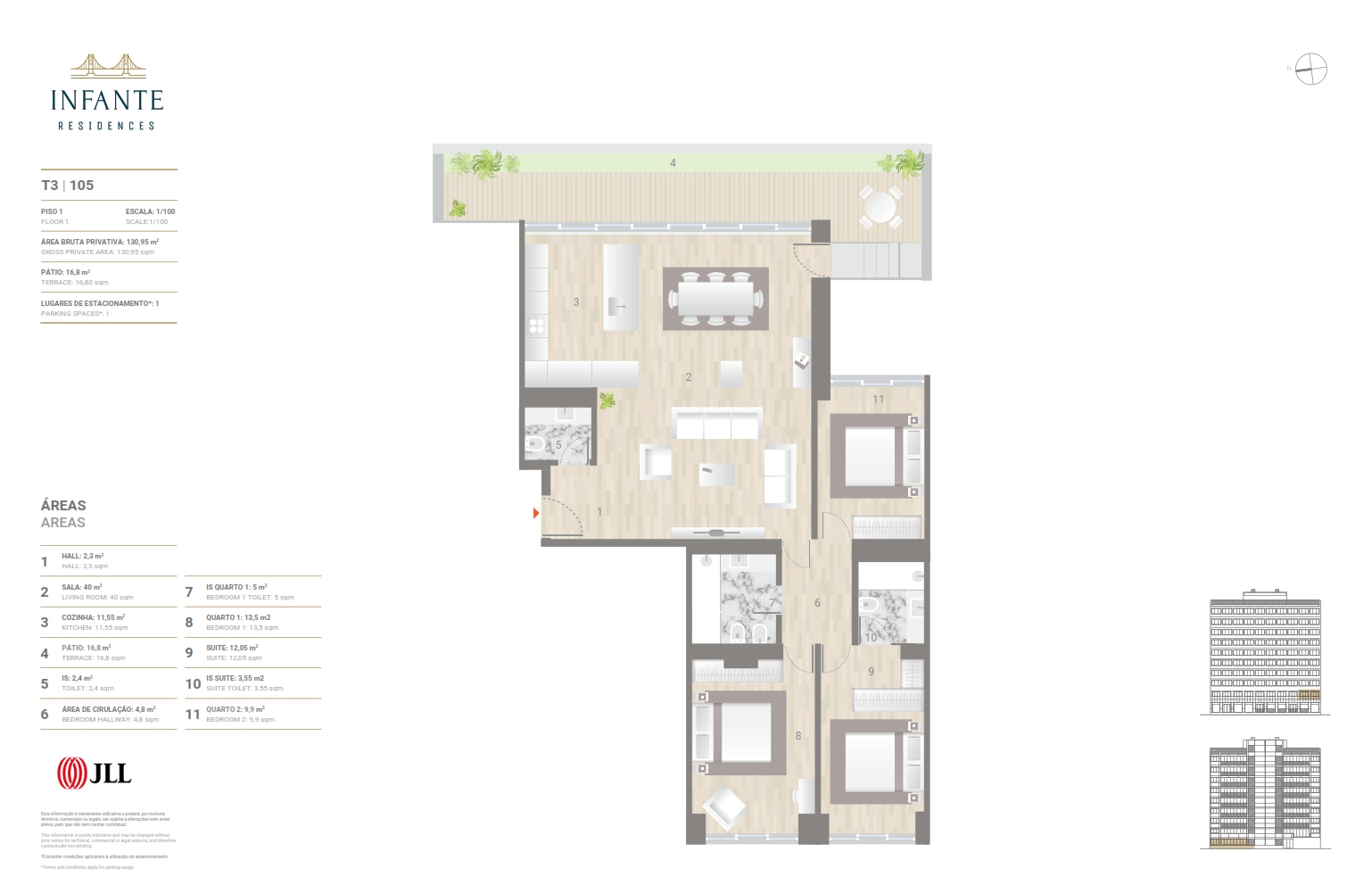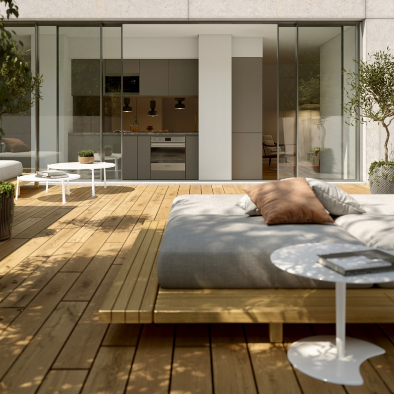 New 3 bedroom apartment, with 131 sqm (gross floor area), parking and a terrace, at Infante Residences, in Lisbon.The Infante Residences, a condominium that comprises forty-five 1, 2, 2+1 and 3-bedroom apartments with areas ranging from 47 sqm to 131 sqm, is located on Avenida Infante Santo, one of the most prestigious avenues in Lisbon.This development, a close neighbour of the River Tagus, results from the authentic Lisbon motion, offering all the benefits of living in Lisbon with the advantage of having parking. The Infante Residences also offers the best of the two worlds to all residents, a terrace in the ground floor apartments and a communal rooftop with a dazzling view over the river, a swimming pool and a service area where you can make a toast to life in Lisbon. Located next to the greenest areas of Lisbon, such as Jardim da Estrela, Tapada das Necessidades, Parque Eduardo VII and Parque Florestal de Monsanto, the Infante Residences offers the possibility of living near everything that Lisbon has to offer. This is a development that adapts to Lisbon’s tradition and it is at the distance of a tram, bus, and soon an underground trip from all the major points of the capital. Near Amoreiras Shopping Center, El Corte Inglés and Time Out Market. This project is for all true “Alfacinhas” who wish to experience the city as tradition dictates: between the Tagus and its hills.