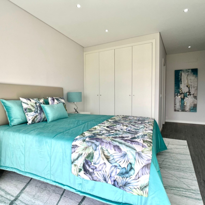 3-bedroom apartment, 137 sqm (gross floor area), new, in a gated community, with two swimming pools, overlooking the Ria Formosa, two balconies, and one parking space, in Quelfes, Olhão, Algarve. It comprises a living room, an integrated and equipped kitchen, three bedrooms with wardrobes, one of them en suite, a pantry, and a storage room in the basement. Modern architecture gated community. Located in Olhão, one of the most central and charming places in the Algarve region. It stands out for the balance between the modern design of the buildings and the natural environment of the gated community gardens. The façades create a dynamic atmosphere and blend into a versatile garden that allows each person, on their own or in a group, to make the most of their space or simply to watch, from the balcony, the changes of the scenery throughout the day or seasons. Located 15 minutes from the Olhão marina and 20 minutes from the Olhão riverside area and centre. 5-minute driving distance from the boats to the islands of Faro and Olhão and from the Bernadette Romeira International School. It is also 15 minutes from Faro Airport, 25 minutes from Quinta do Lago Laranjal Golf Course, and a two and a half-hour drive from Lisbon.