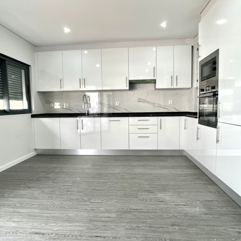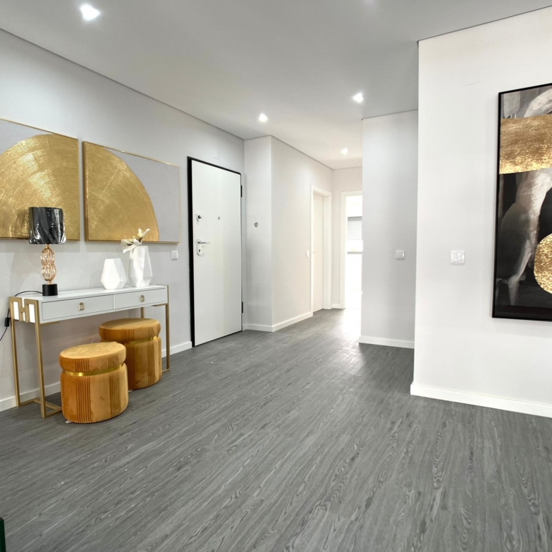 3-bedroom apartment, 137 sqm, (gross floor area), new, in a gated condominium with two swimming pools, two balconies, and one parking space, in Quelfes, Olhão, Algarve. It comprises a living room, an integrated and equipped kitchen, three bedrooms with wardrobes, one of them en suite, a pantry, and a storage room in the basement. Modern architecture gated condominium. Located in Olhão, one of the most central and charming places in the Algarve region. It stands out for the balance between the modern design of the buildings and the natural environment of the gated condominium gardens. The façades create a dynamic atmosphere and blend into a versatile garden that allows each person, on their own or in a group, to make the most of their space or simply to watch, from the balcony, the changes of the scenery throughout the day or seasons. Located 15 minutes from the Olhão marina and 20 minutes from the Olhão riverside area and centre. 5-minute driving distance from the boats to the islands of Faro and Olhão and from the Bernadette Romeira International School. It is also 15 minutes from Faro Airport, 25 minutes from Quinta do Lago Laranjal Golf Course, and a two and a half-hour drive from Lisbon.