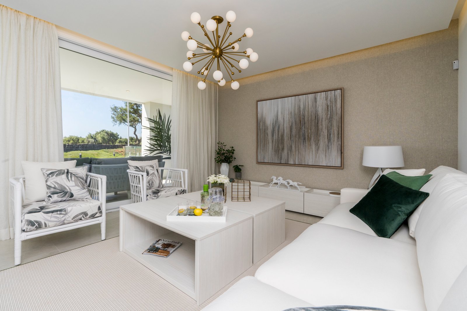 The interior of the homes is based on the “open plan” and “total living” concepts, giving priority to a spacious living room which leads to a large open terrace, both fully integrated into the surrounding corn oak meadows and making the most of the predominantly southern aspect and the views of the golf course and the sea.