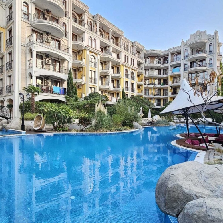 Distance to the beach: The complex is approximately 600 to 800 meters from the beach, which is about a 10-15 minute walk. The beach in this part of Sunny Beach is less crowded, making it attractive for families and vacationers looking for peace by the sea.