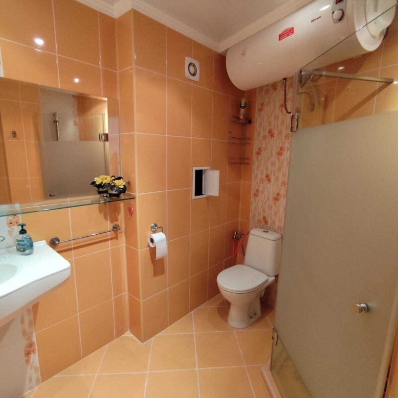 The entire floor is tiled, creating a pleasant atmosphere and easy maintenance. The bathroom has a practical shower cabin. A generous hallway offers additional space and comfort.