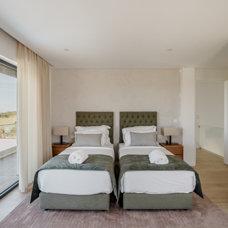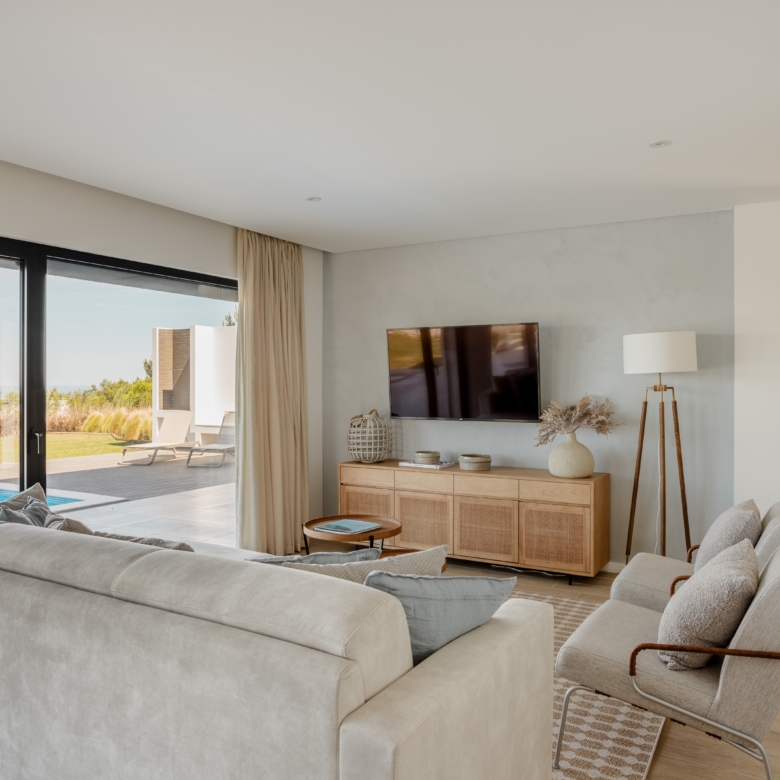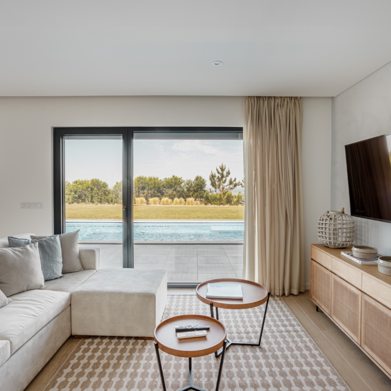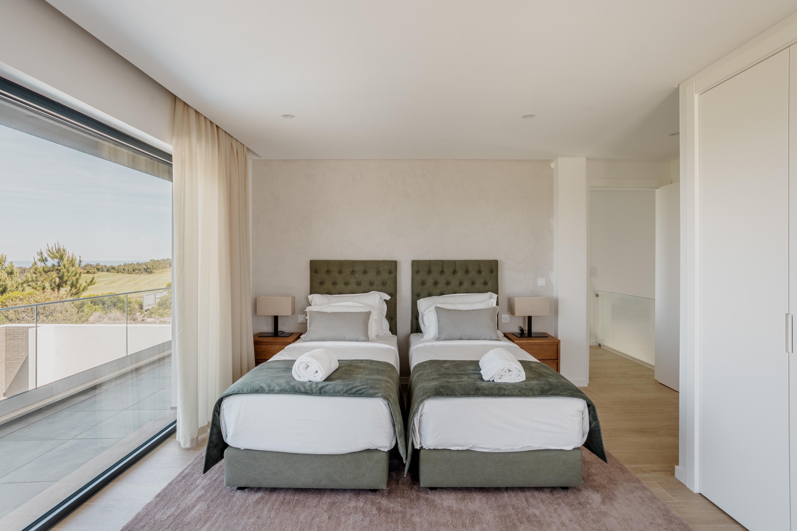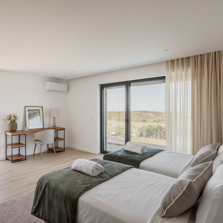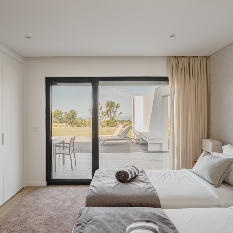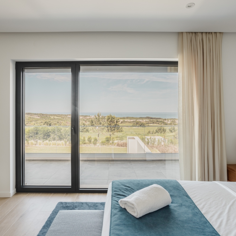 3-bedroom villa with 263 sqm of gross private area, private garden and pool, and two parking spaces, with sea view, in the private condominium Royal Óbidos, with 24-hour security, in Óbidos.The house is distributed as follows: on the ground floor, there is an open-plan living room and kitchen of 50.90 sqm with access to the terrace, garden, and pool. On this floor, there is also a guest bathroom and a suite of 13.10 sqm. On the first floor, two suites with generous areas that also access a terrace where you can enjoy the magnificent view over the resort, golf course, and sea.With 34 hectares of land, the private condominium Royal Óbidos features an 18-hole golf course that hosts major competitions such as the Portugal Open. This golf course was the last one designed by the great golf legend Severiano Ballesteros. In addition to the golf course, it already has a Boutique Hotel, the Evolutee Hotel, 128 tourist apartments, tennis and padel courts overlooking the Óbidos Lagoon, a playground, and a multi-sports field. The condominium also has the Club House restaurant, a supermarket, and a branch of the Brave Generation International School. Another restaurant is under construction and will open at the end of 2024.Royal Óbidos is 1 hour and 15 minutes driving distance from Lisbon Airport, 20 minutes from Caldas da Rainha, 30 minutes walking distance from Rey Cortiço Beach, and 25 minutes from the beaches of Baleal and Peniche.
