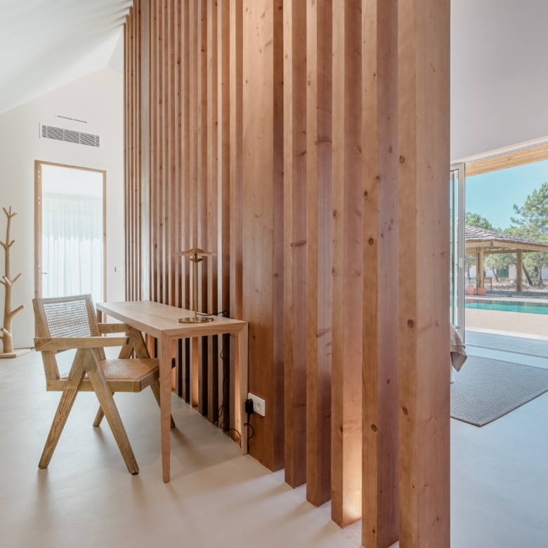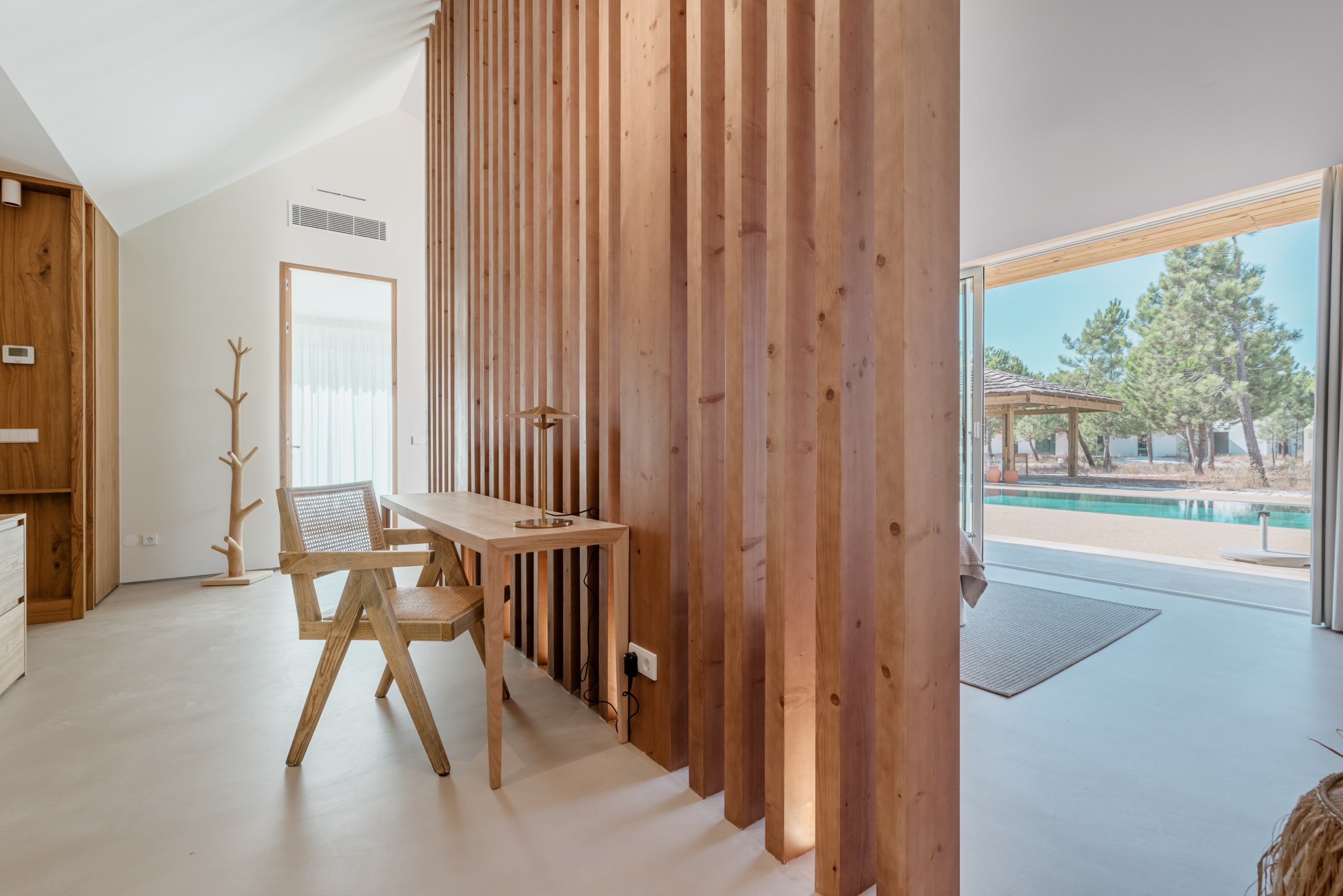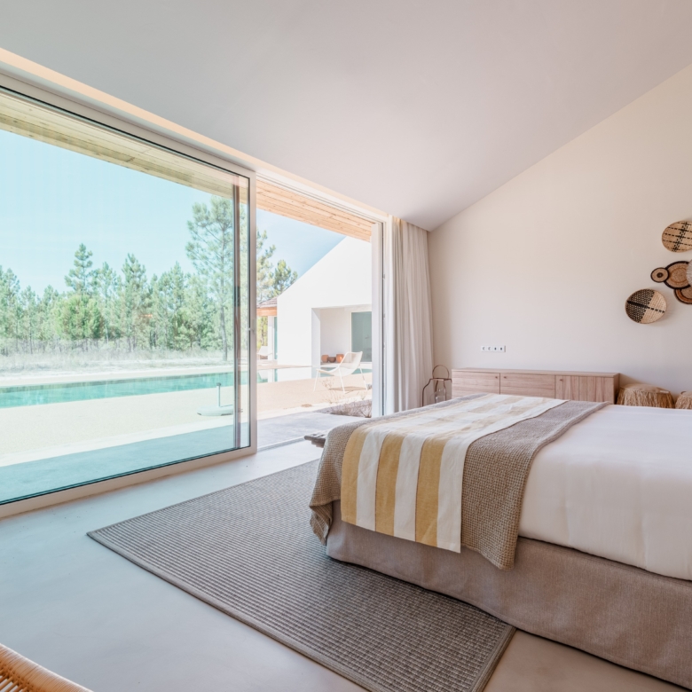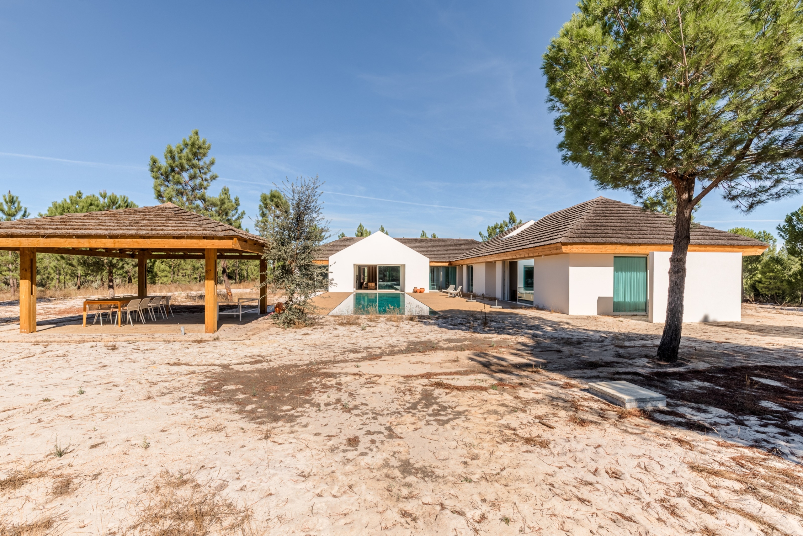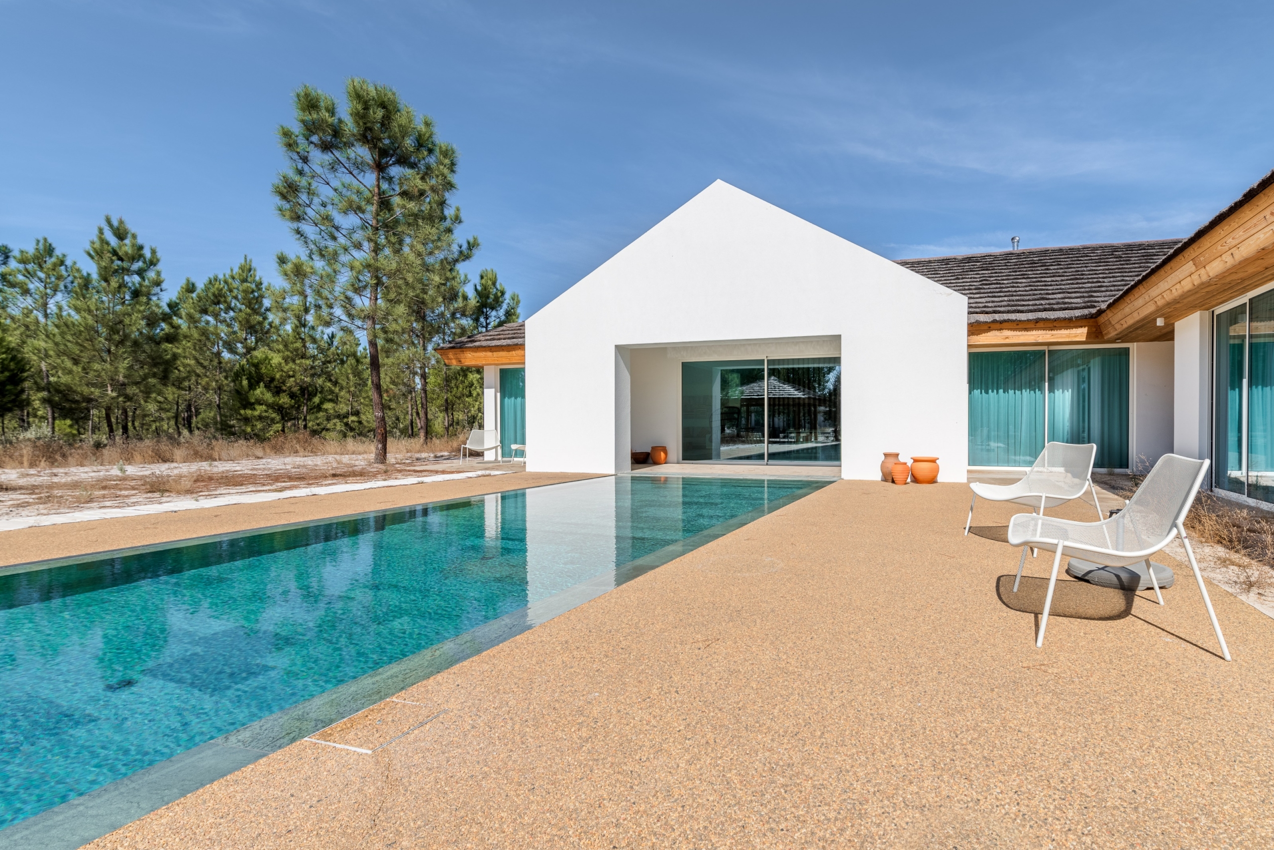 3-bedroom villa with 494 sqm of gross private area with swimming pool, located in Estates at Spatia Comporta, with a common area for exclusive use of 23,077 sqm.The villa consists of 3 en-suite bedrooms, a fully furnished and equipped open-plan kitchen leading to the dining area, pantry, a spacious 61.25 sqm living room with access to the exterior, and a guest bathroom. Outside, we find the garden integrated with the surrounding countryside, a swimming pool, and a pergola with dining area.Decorated by sand dunes and pine forests, dotted with the blue of the Atlantic Ocean and the sun, the modern architecture villas, with spacious and airy spaces, are perfectly integrated into the Mediterranean landscape and in perfect harmony with nature, culture, and local traditions.Estates at Spatia Comporta is a luxury resort designed to meet the highest standards of those seeking true luxury, comfort, and refinement, including all the services that make the experience even more complete and exclusive. It features a clubhouse with reception, lounge, gym under construction, tennis and padel courts, restaurant and 2 swimming pools, 18 hotel rooms and 38 exclusive villas with 3 and 4-bedroom typologies, an architecture that combines contemporary style with Comporta’s identity, a plot area between 1 to 9 hectares providing perfect harmony with nature, and gross private areas ranging from 436 to 540 sqm; and also a Beach Club with 3km of sandy beach just 15 minutes away.Located about 10 minutes driving distance from the main beaches and golf courses in the region, 15 minutes from Carvalhal and Grândola center, 20 minutes from Comporta and Melides, and 1 hour from Lisbon.