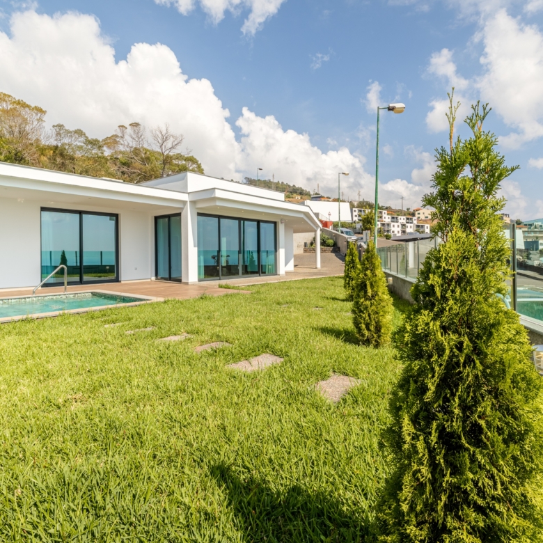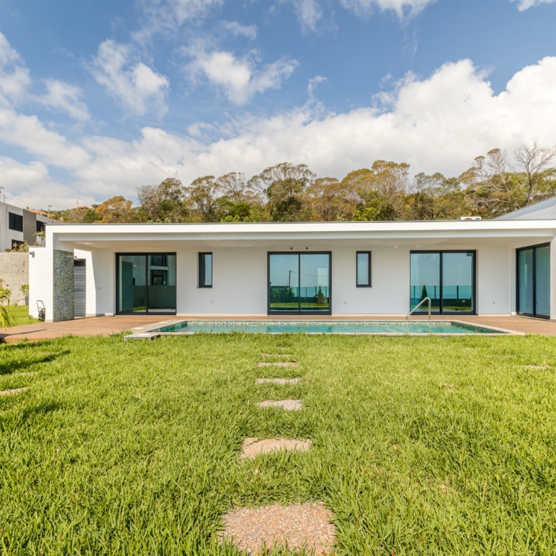 Single-story 3-bedroom villa with 260 sqm of gross construction area, pool, garden, barbecue area, and unobstructed sea view over the Atlantic Ocean, set on a 908 sqm plot in Machico, Madeira. It comprises a 40 sqm living and dining room, guest bathroom, fully equipped kitchen, laundry and storage area, and three en-suite bedrooms, with the master suite featuring a walk-in closet. The exterior includes a barbecue and sunbathing area, pool, and garden with stunning sea views. High-quality finishes throughout.Located in Machico, in a quiet and very private area with excellent access, just 5 minutes’ driving distance from Machico center, Santa Cruz center, and Madeira International Airport. 20 minutes from Funchal center.
